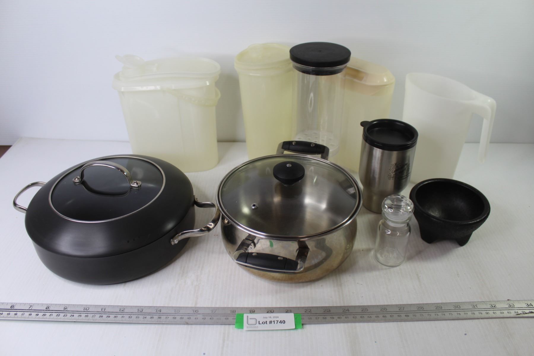Tupperware & Rubbermaid Containers - Cooking Pans w/Lids - Beverage Cup - Misc. Items