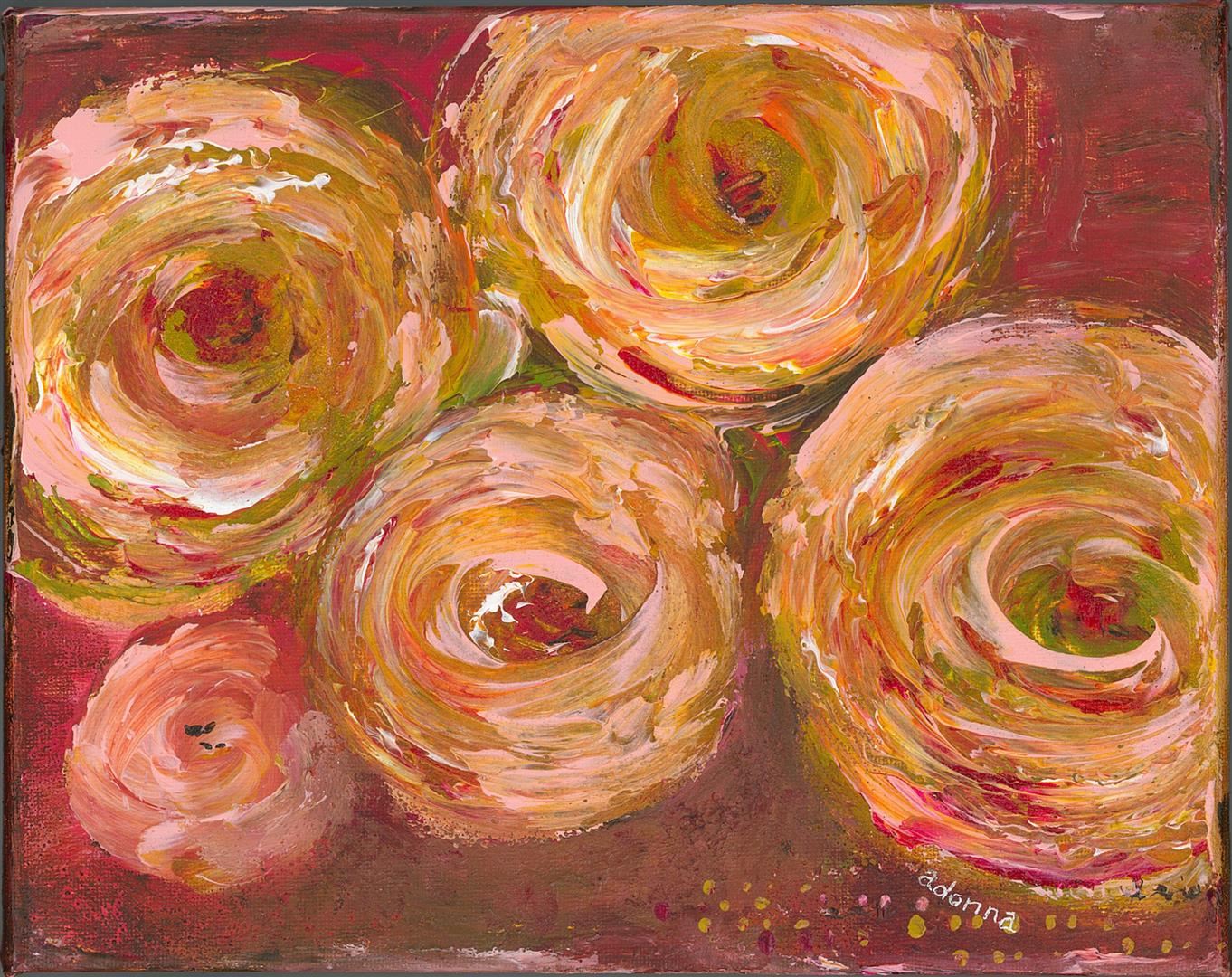 Acrylic on stretched canvas by Adonna. A 10 x 8 abstract floral gives the impression of motion.