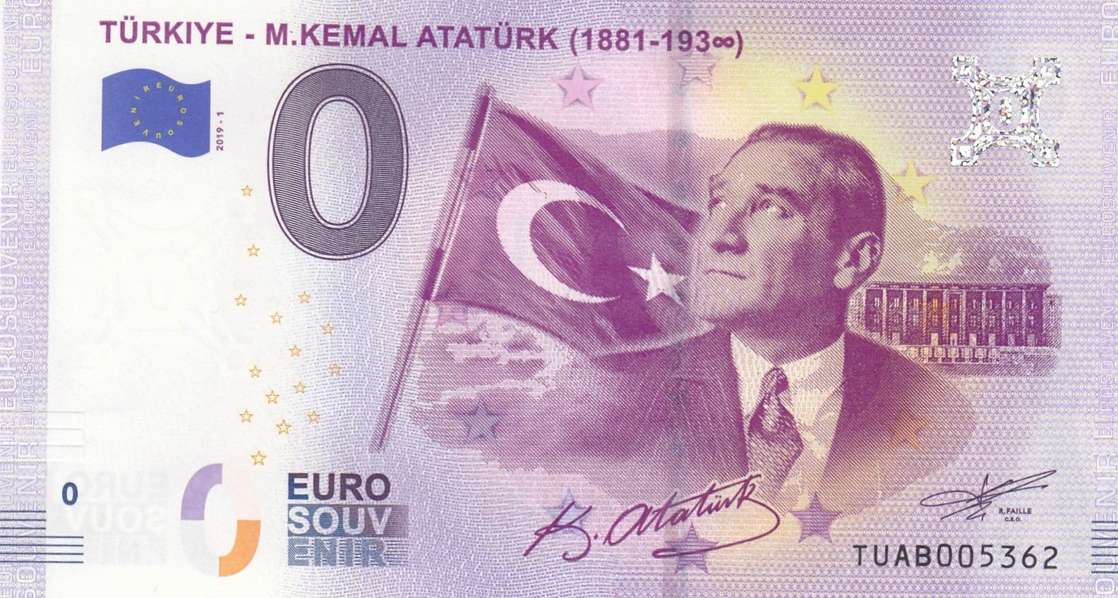 Turkey, 0 Euro, 2019, UNC, FANTASY BANKNOTE, Atatürkbr/Republic of Turkey's founder Mustafa Kemal Ataturk's memory of fancy printed banknot, serial number: TUAA 001339