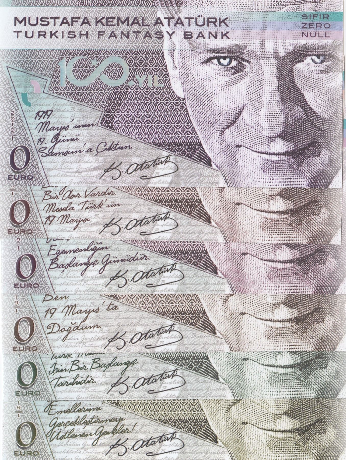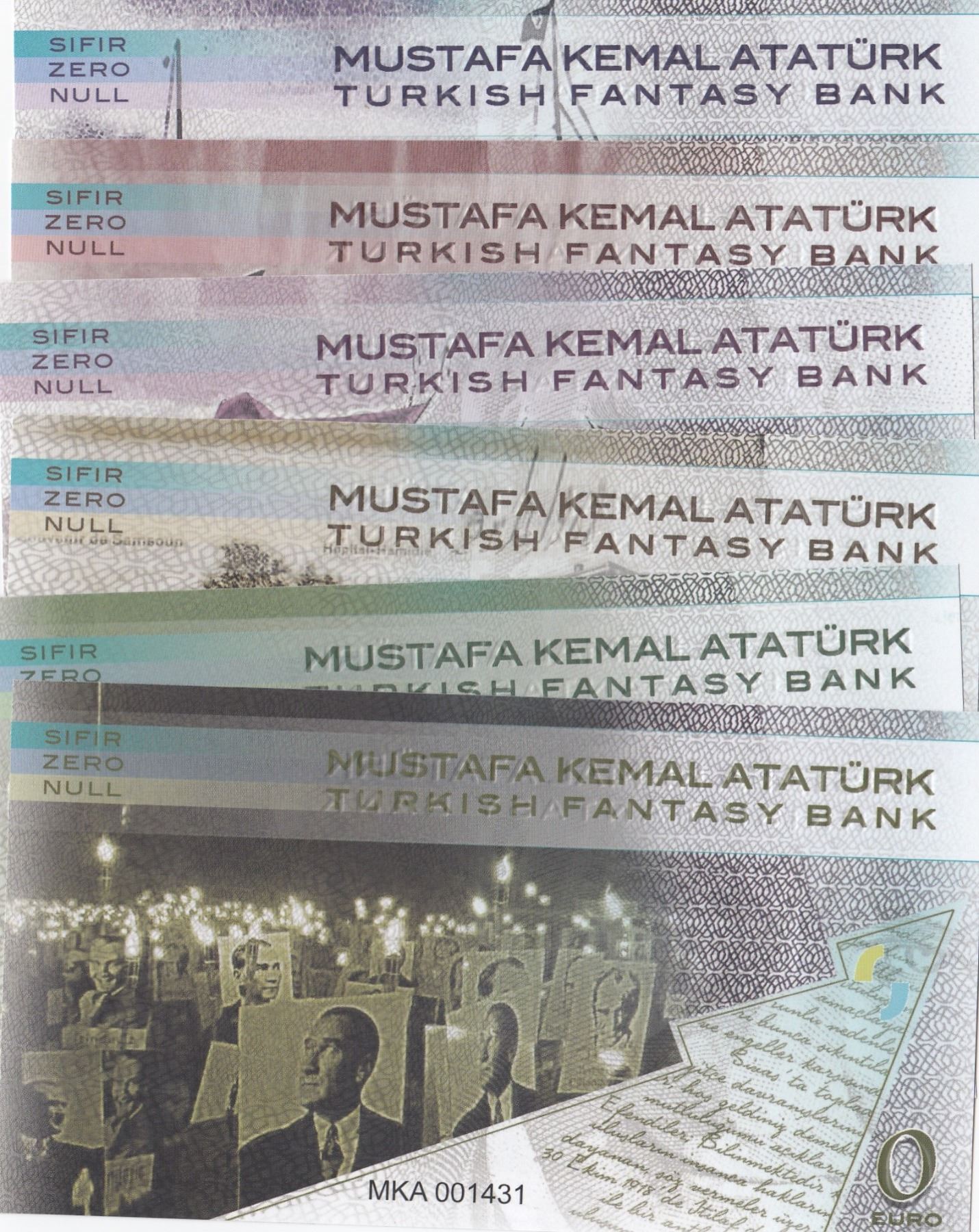 Turkey, 0 Euro, 2019, UNC, FANTASY BANKNOTE, Mustafa Kemal Atatürk, FOLDER, (Total 6 banknotes)br/Fancy banknote printed in memory of the 100th anniversary of Atatürk's departure to Samsun, all banknotes have the same serial number