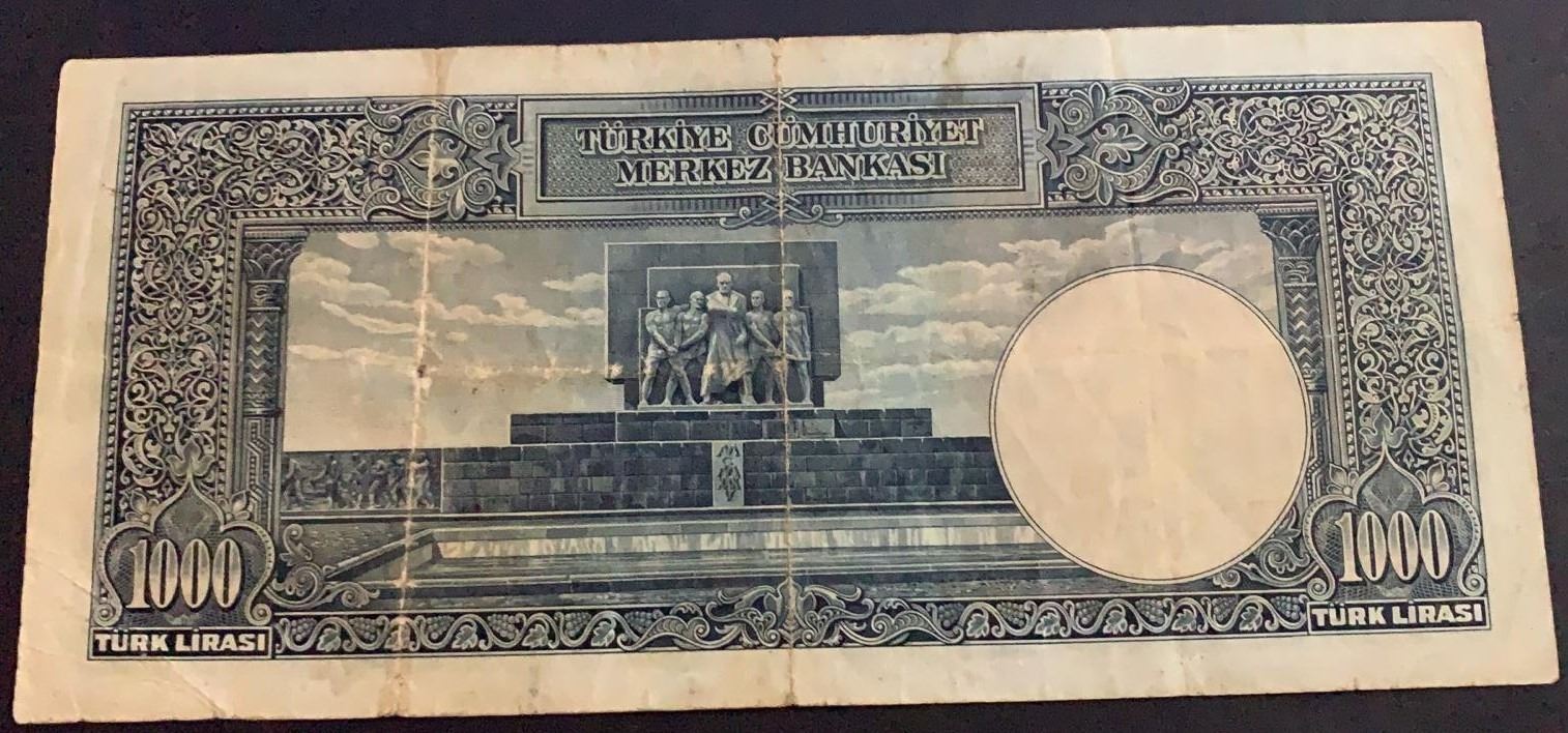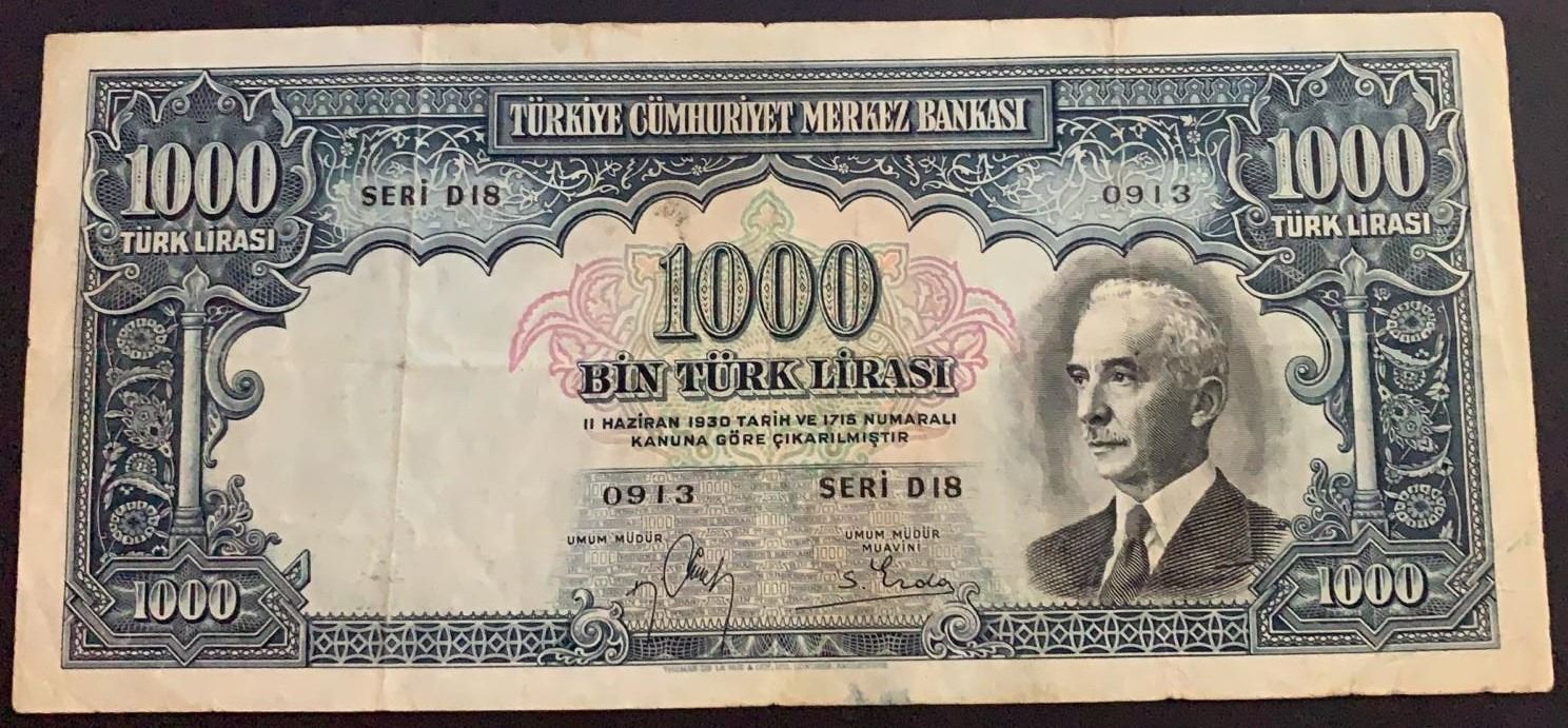 Turkey, 1.000 Lira, 1940, VF, 2/2. Emission, p139br/Inönü portrait, serial number: D18 0913, natural