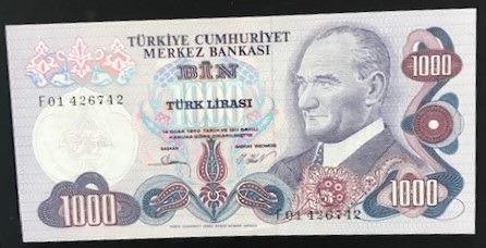 Turkey, 1.000 Lira, 1981, UNC, 6/3. Emission, p191, "F01" first prefixbr/serial number: F01 426742