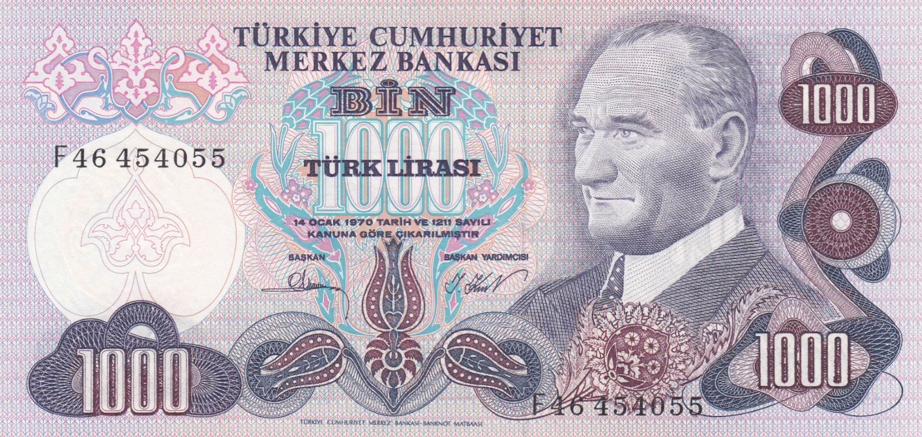 Turkey, 1.000 Lira, 1981, UNC, 6/3. Emission, p191br/Atatürk portrait, serial number: F46 454055, th