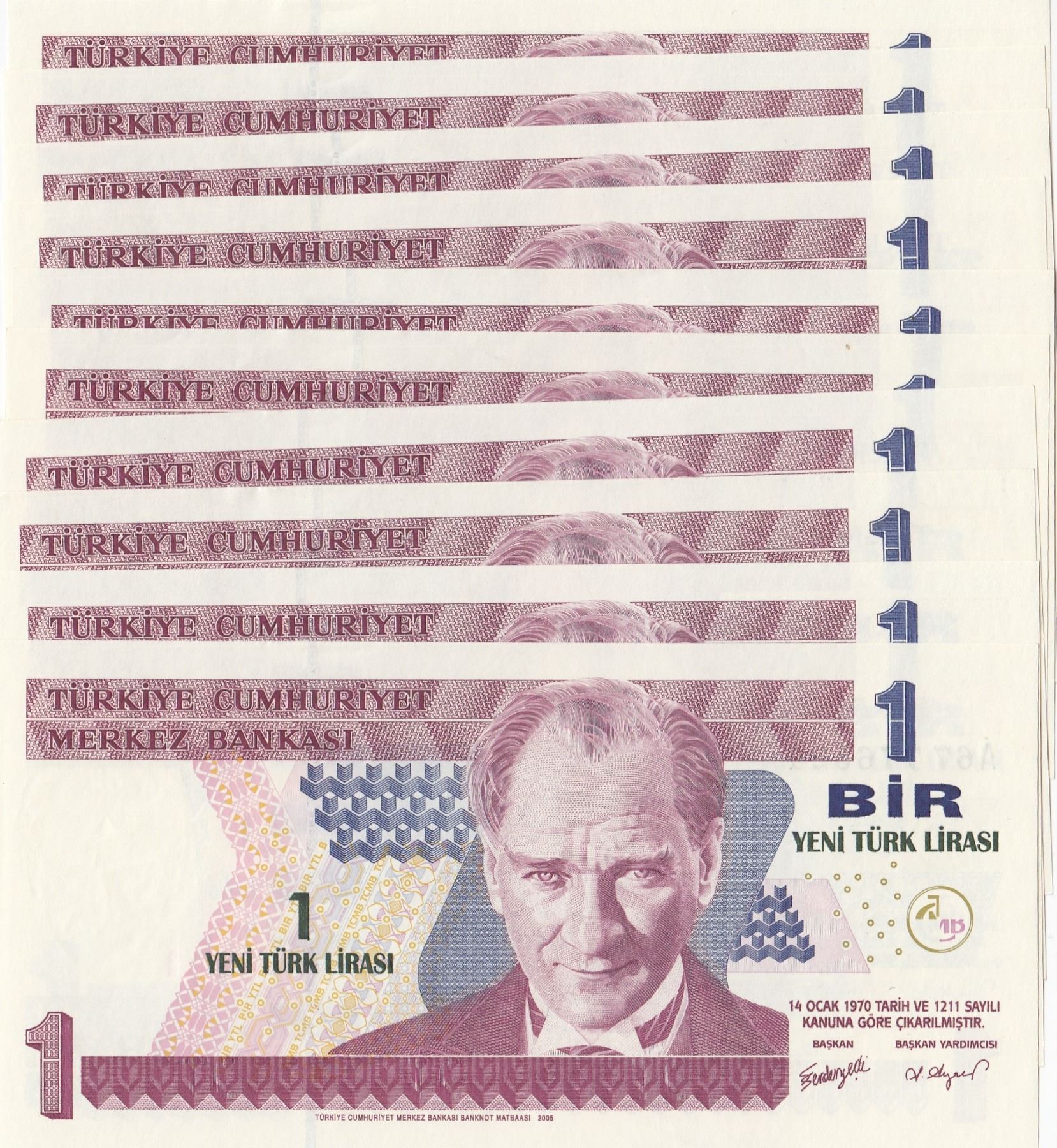 Turkey, 1 New Turkish Lira, 2005, UNC, 8/1. Emission, p216, Sequential prefix numbers, (Total 10 ban