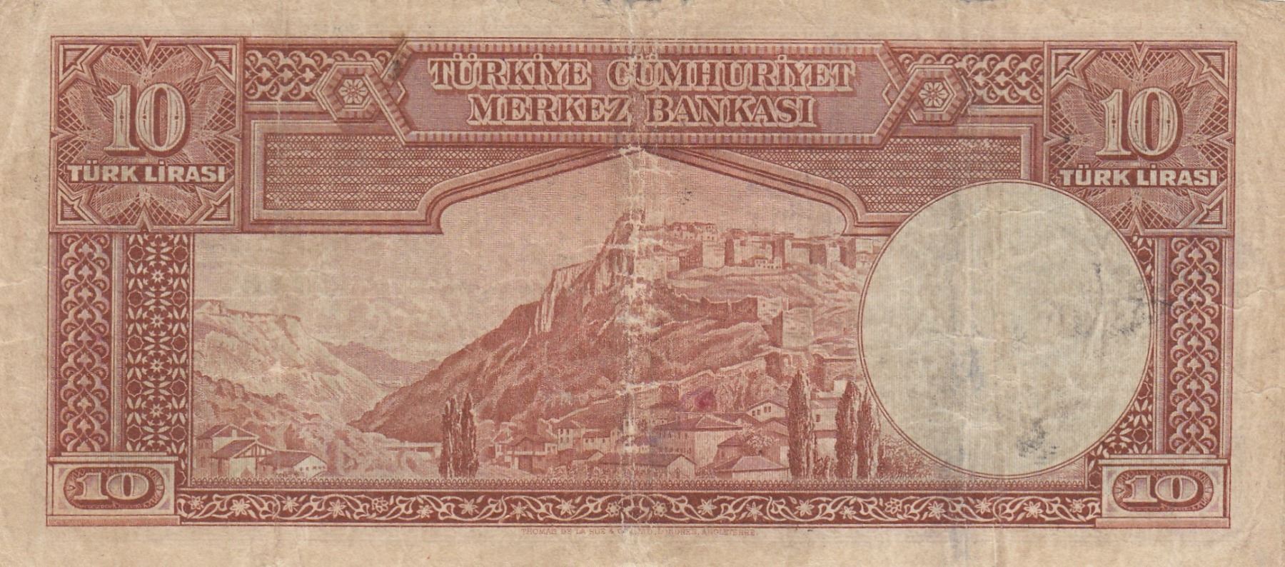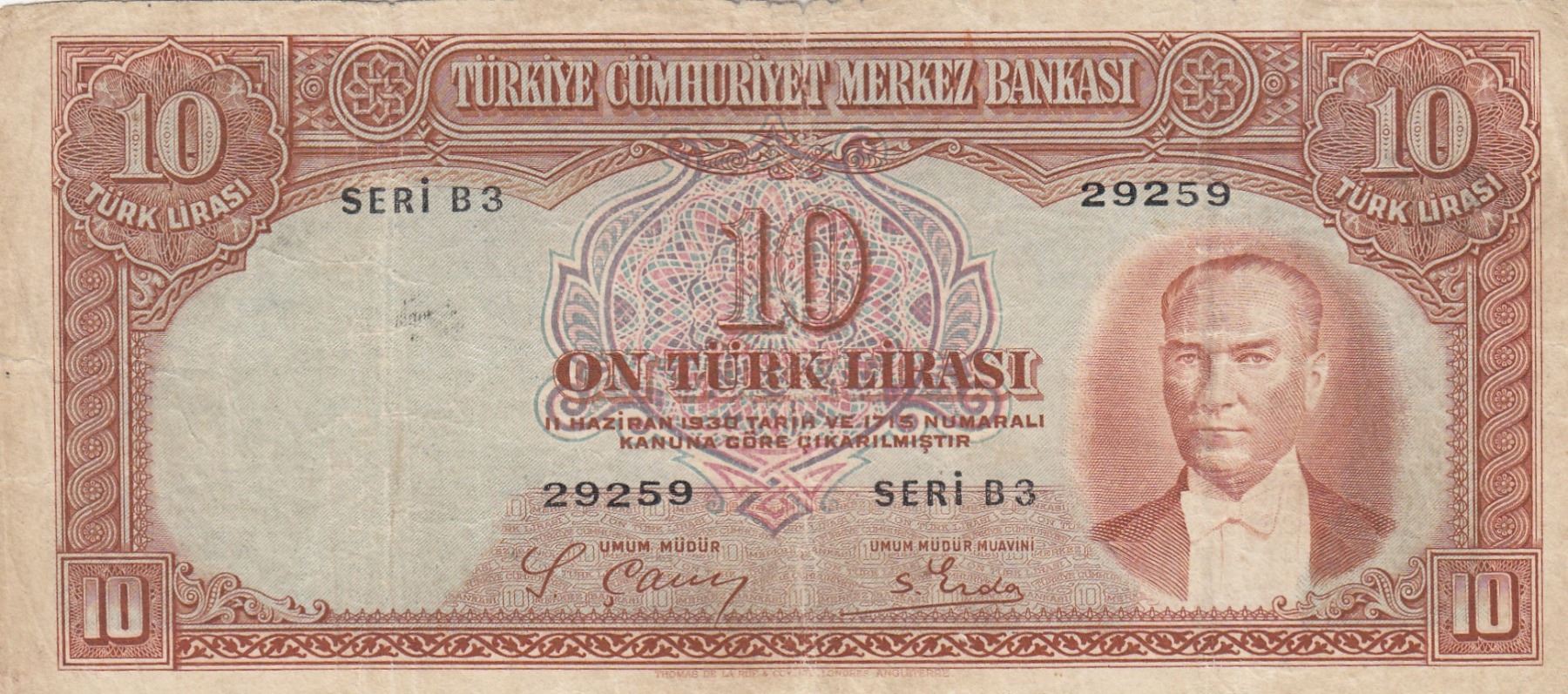 Turkey, 10 Lira, 1938, FINE, 2/1. Emission, p128br/serial number: B3 29259