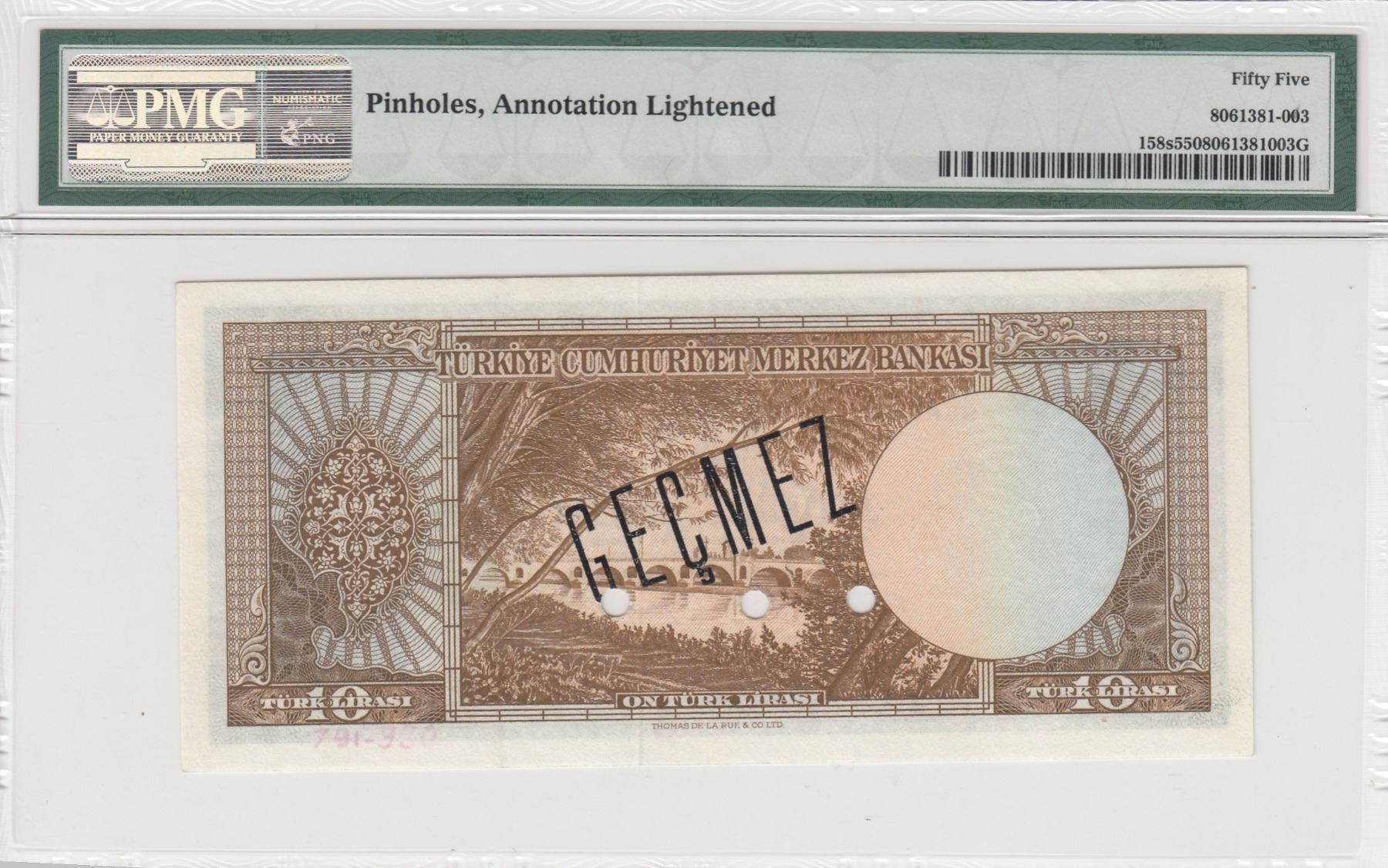 Turkey, 10 Lira, 1958, AUNC, 5/3. Emission, p158, SPECIMENbr/PMG 55, Atatürk portrait, serial number