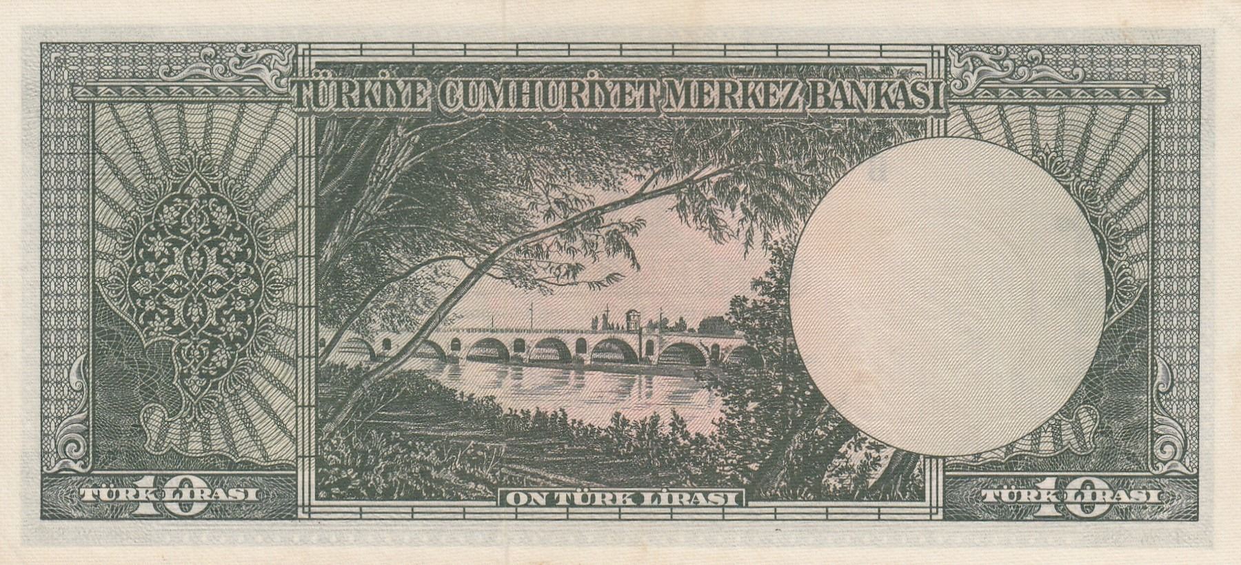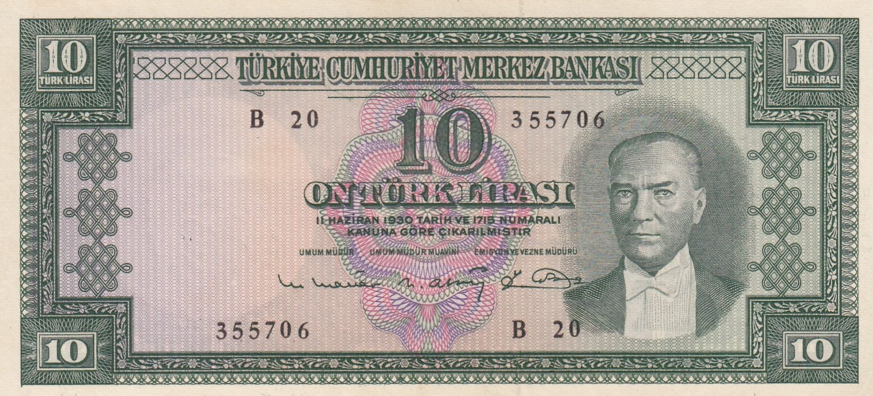 Turkey, 10 Lira, 1963, UNC, 5/6. Emission, p161br/Atatürk portrait, serial number: B20 355706
