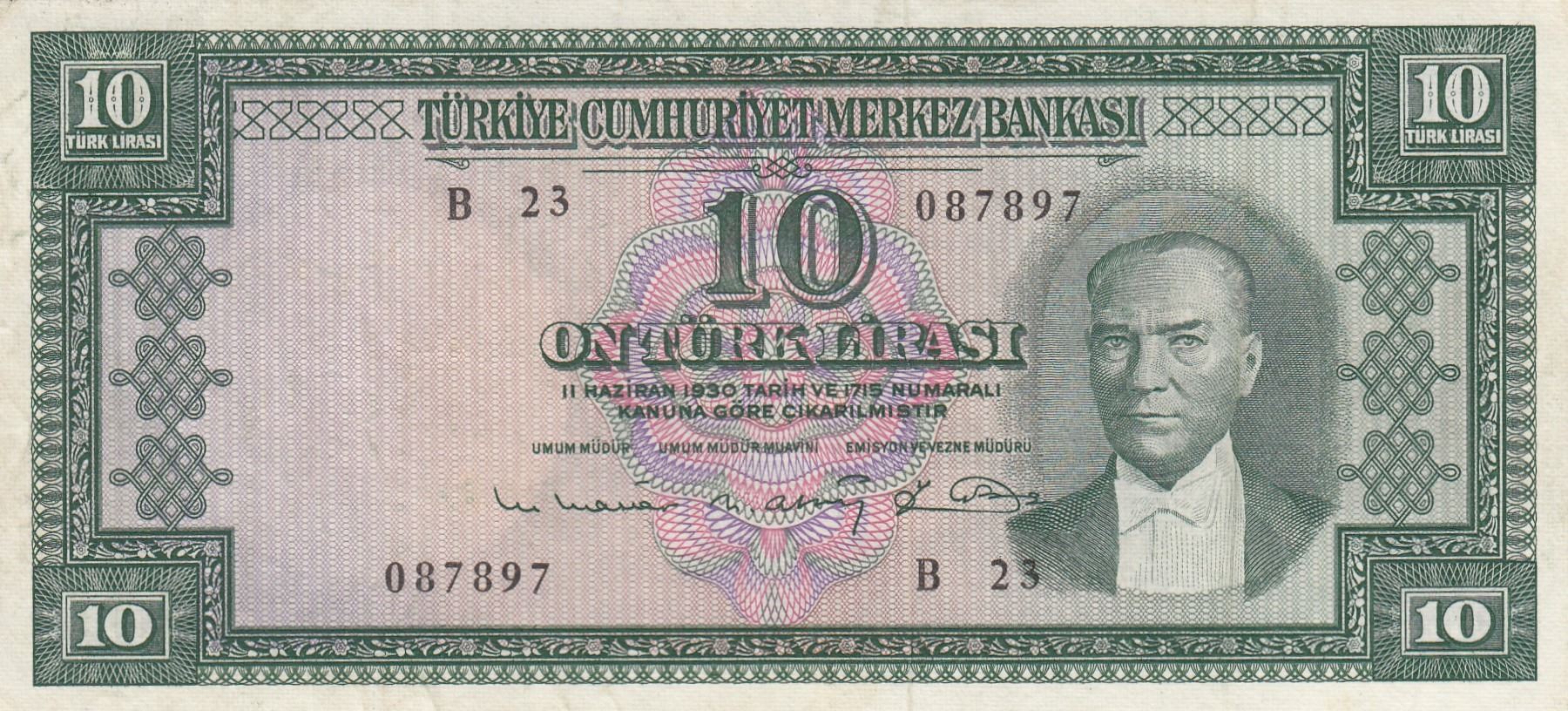 Turkey, 10 Lira, 1963, XF, 5/6. Emission, p161br/serial number: B23 087897