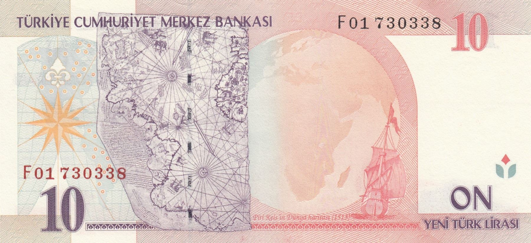 Turkey, 10 New Turkish Lira, 2005, UNC, 8. Emission, p218, "F01"br/Atatürk portrait, serial number: F01 730338