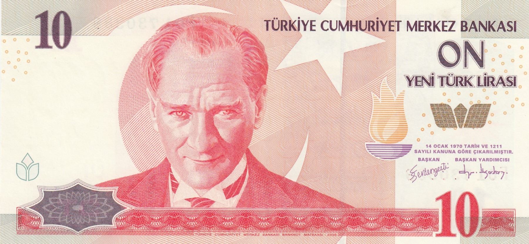 Turkey, 10 New Turkish Lira, 2005, UNC, 8. Emission, p218, "F01"br/Atatürk portrait, serial number: