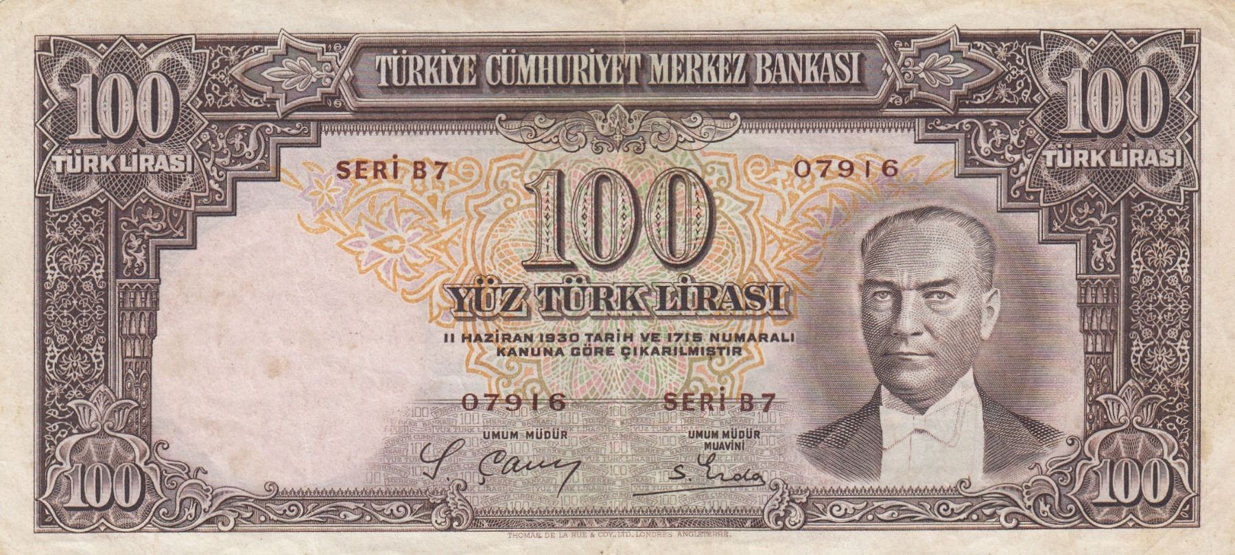 Turkey, 100 Lira, 1938, XF (-), 2/1. Emission, p130br/serial numbe: B7 07916, natural