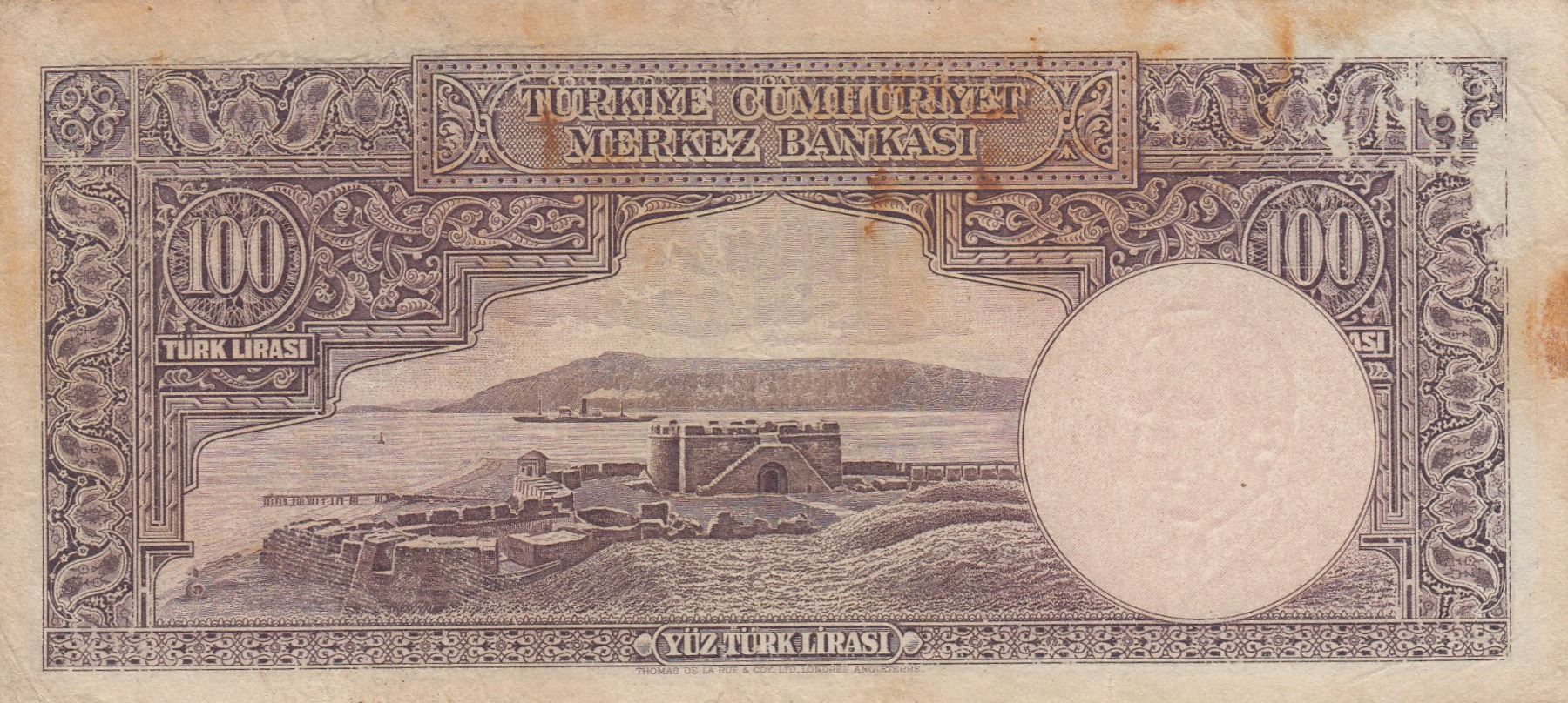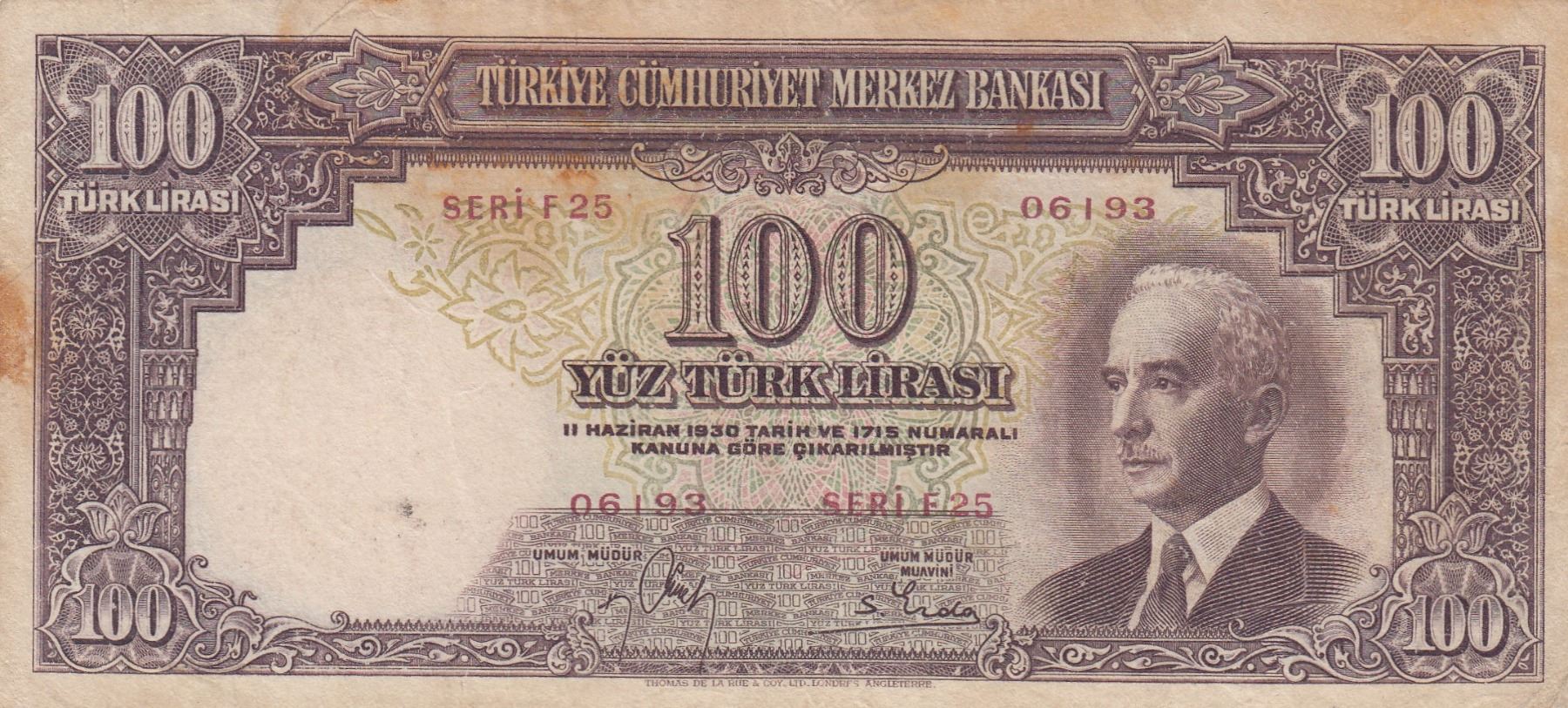 Turkey, 100 Lira, 1942-44, VF (+), 2/1. Emission, Unlistedbr/serial number: F25 06193, natural, rust