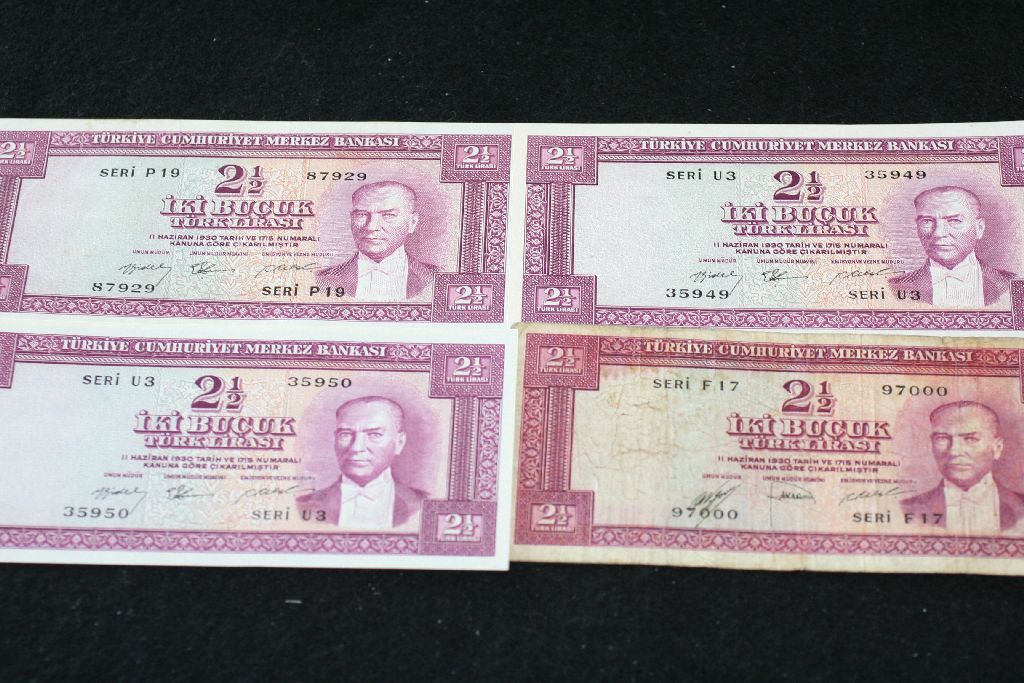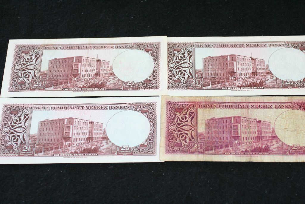 Turkey 2 1/2 Iki Bucuk Turk Lirasi Foreign Bank Note, Lot of 4