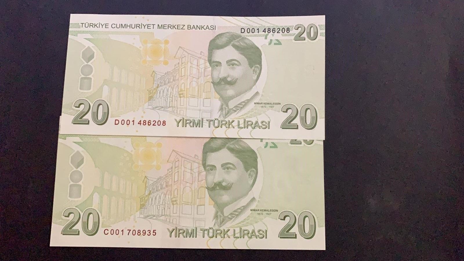 Turkey, 20 Lira, 2017, UNC, 8. Emission, p224, "C001" and "D001", (Total 2 banknotes)br/Atatürk portrait, serial numbers: C001 708935 and D001 486208