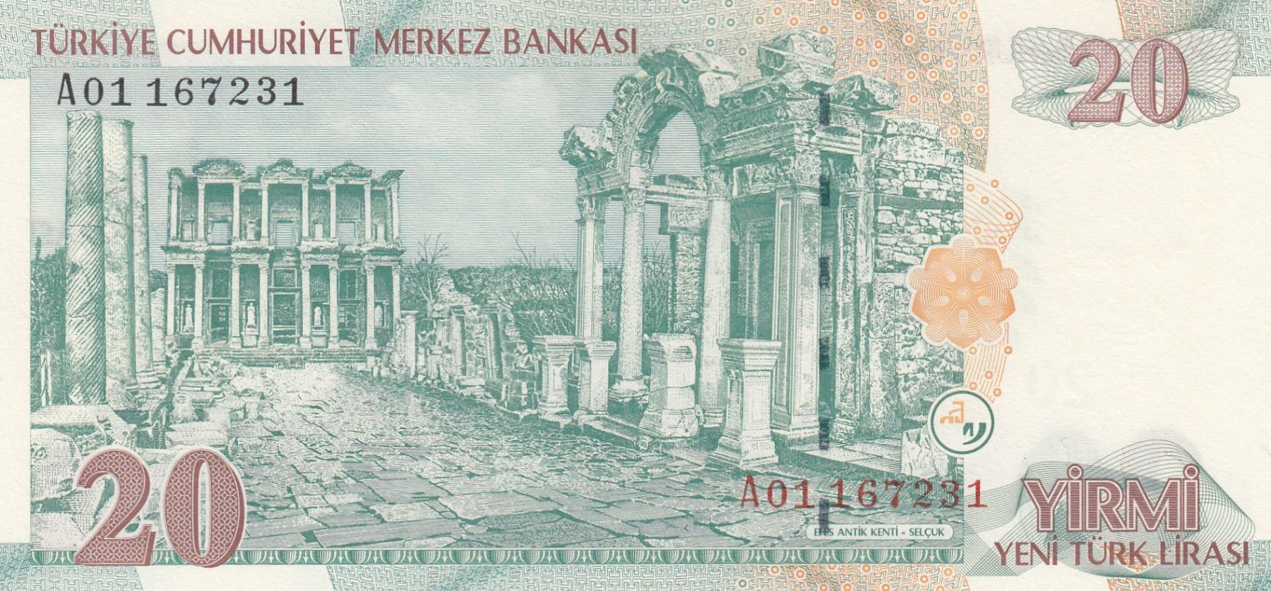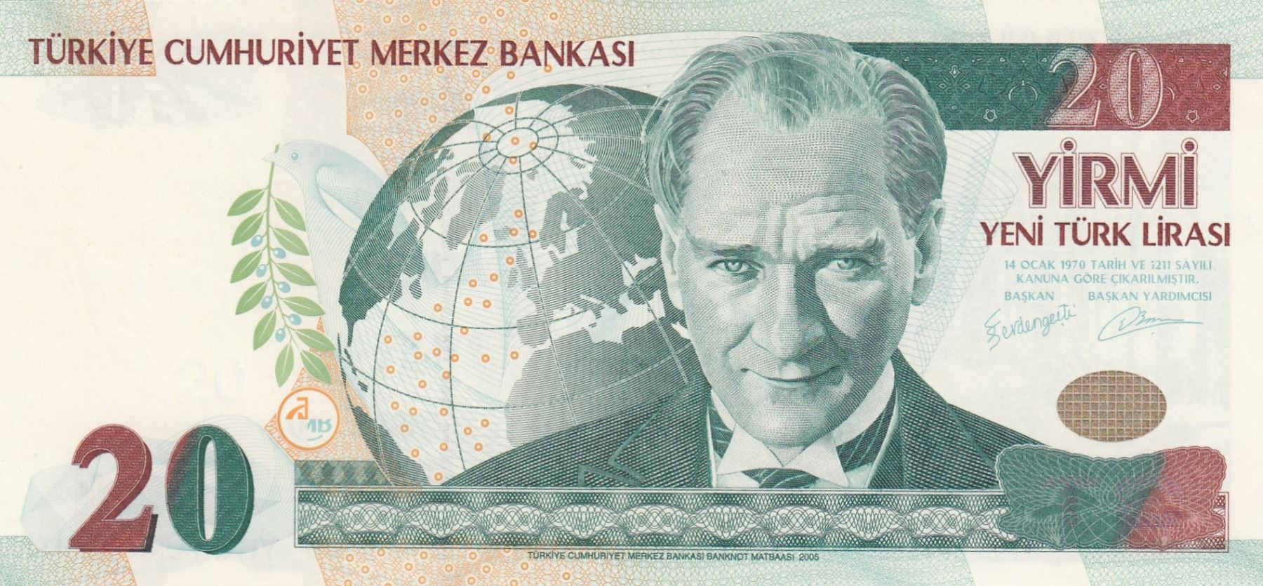 Turkey, 20 New Turkish Lira, 2005, UNC, p219, "A01"br/Atatürk portrait, serial number: A01 167231