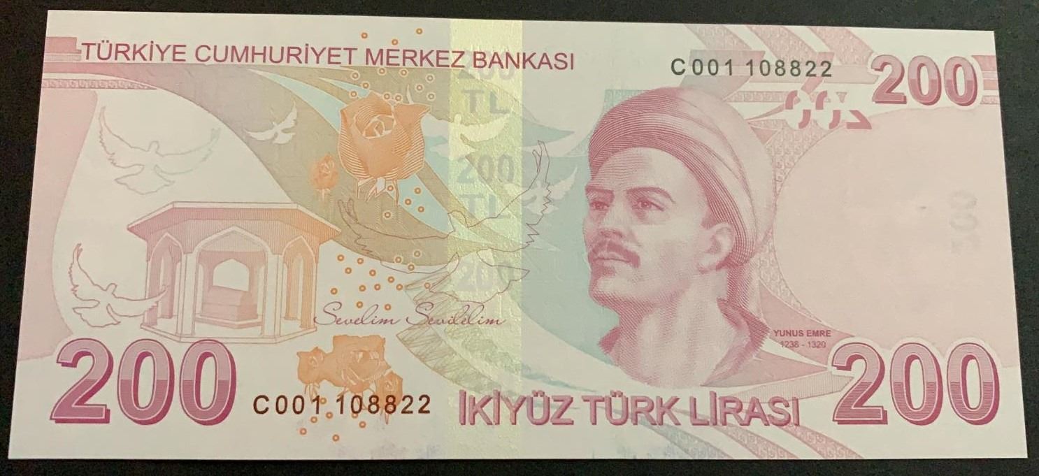 Turkey, 200 Lira, 2017, UNC, 9/3. Emission, p228c, "C001"br/Atatürk portrait, serial number: C001 10