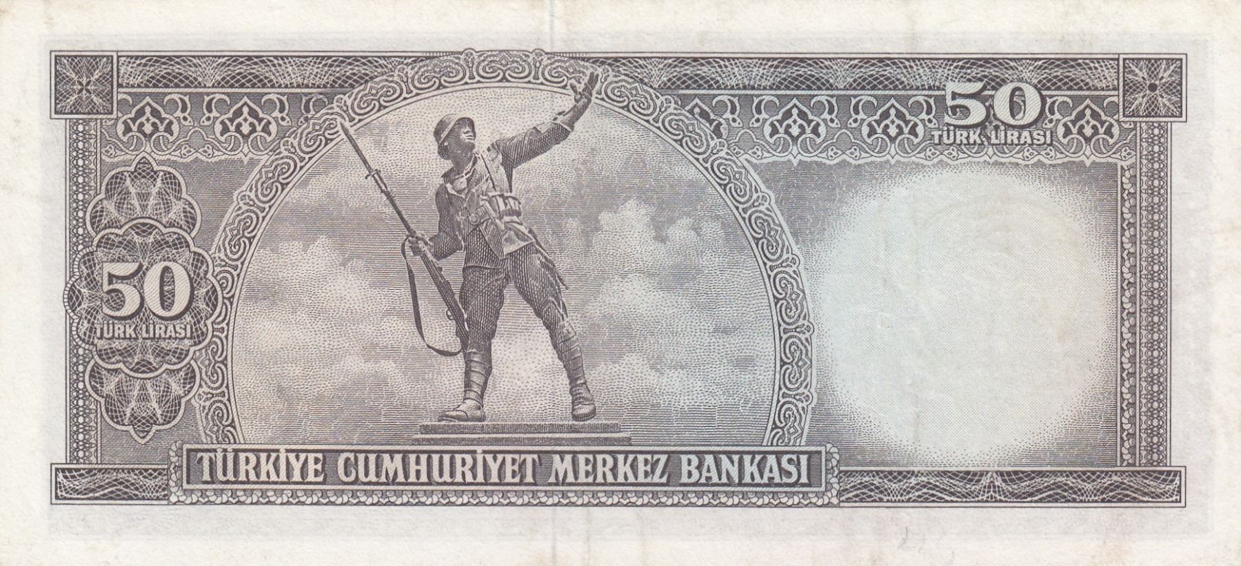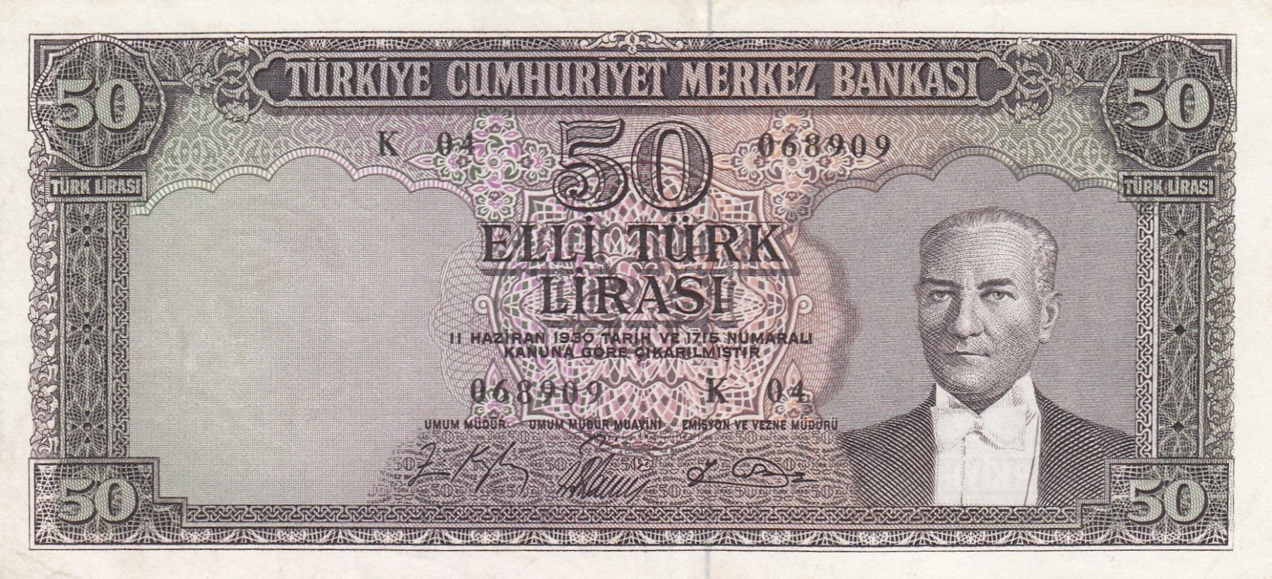 Turkey, 50 Lira, 1964, XF, 5/6. Emission, p175br/Atatürk portrait, serial number: K04 068909, presse