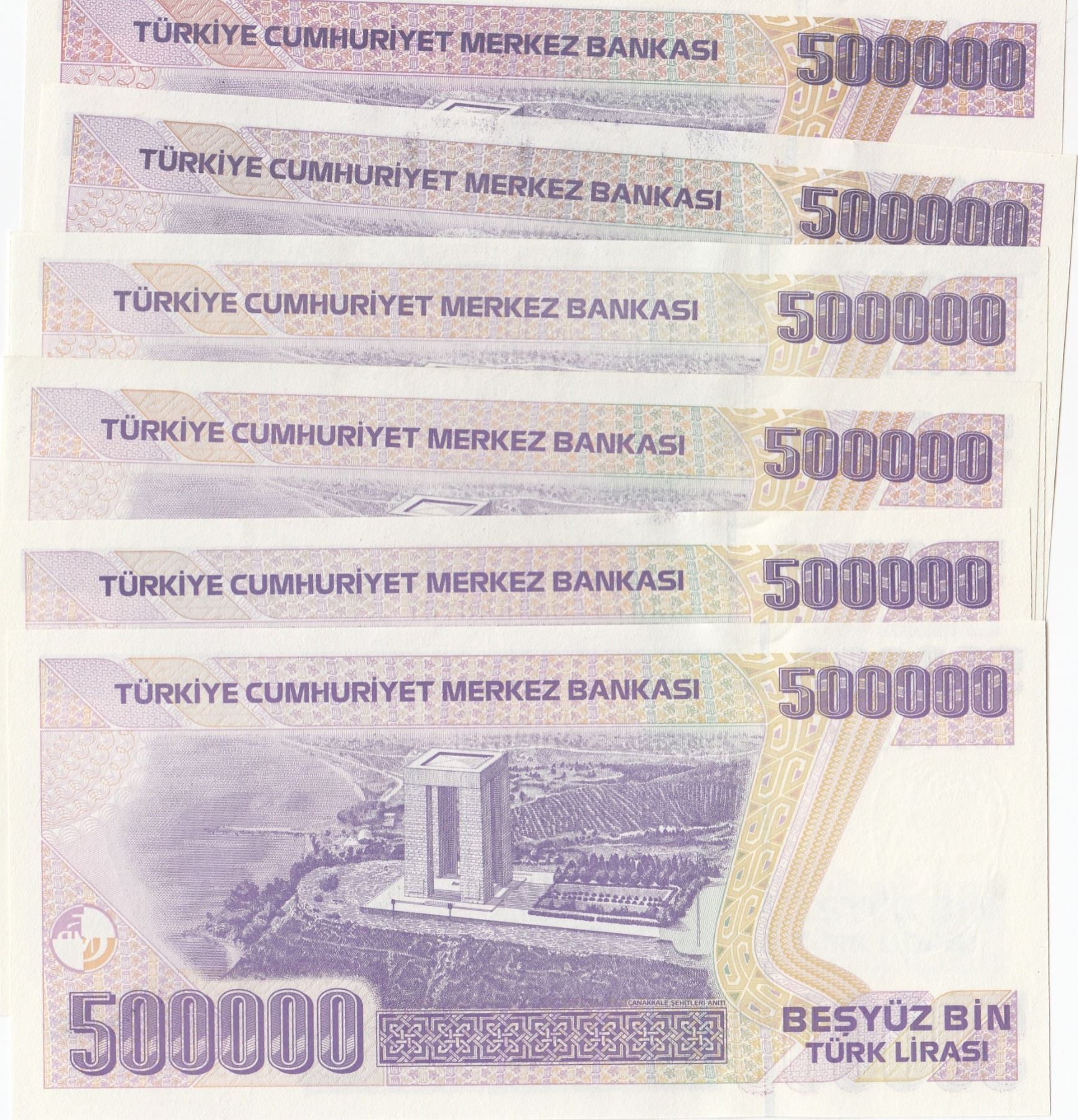 Turkey, 500.000 Lira, 1997, UNC, 7/4. Emission, p212, (Total 6 banknotes)br/prefiks numbers: H78, I4