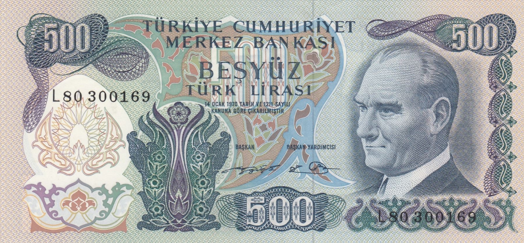 Turkey, 500 Lira, 1974, AUNC, p190ebr/pressed, Atatürk portrait, serial number: L80 300169