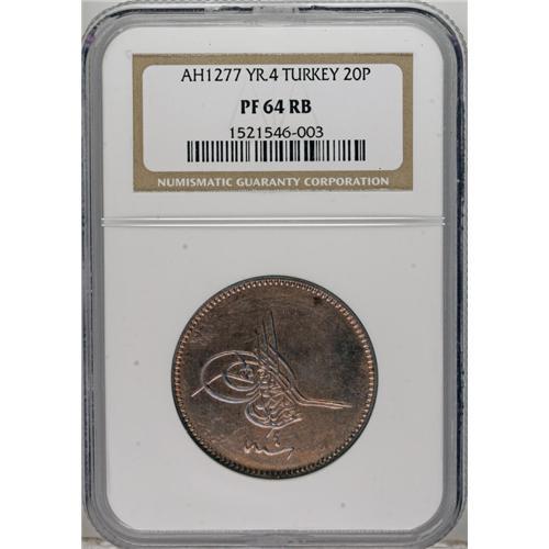 <B>Abdul Aziz 20 Para 1277/4, </B></I>KM701, Proof 64 Red & Brown NGC, virtually fully lustrous with mirror surfaces.<BR><BR><b>Shipping:</b> Coins & Currency (<a target="_blank" href="http://www.heritageauctions.com/common/shipping.php">view shipping information</a>)