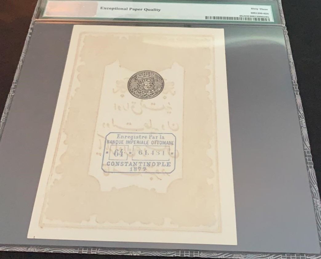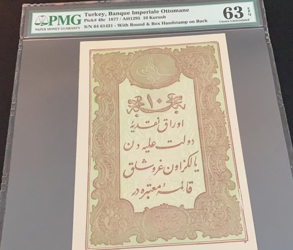 Turkey, Ottoman Empire, 10 Kurush, 1877, UNC, p48dbr/PMG 63 EPQ, serial number: 64-61481, II. Abdül