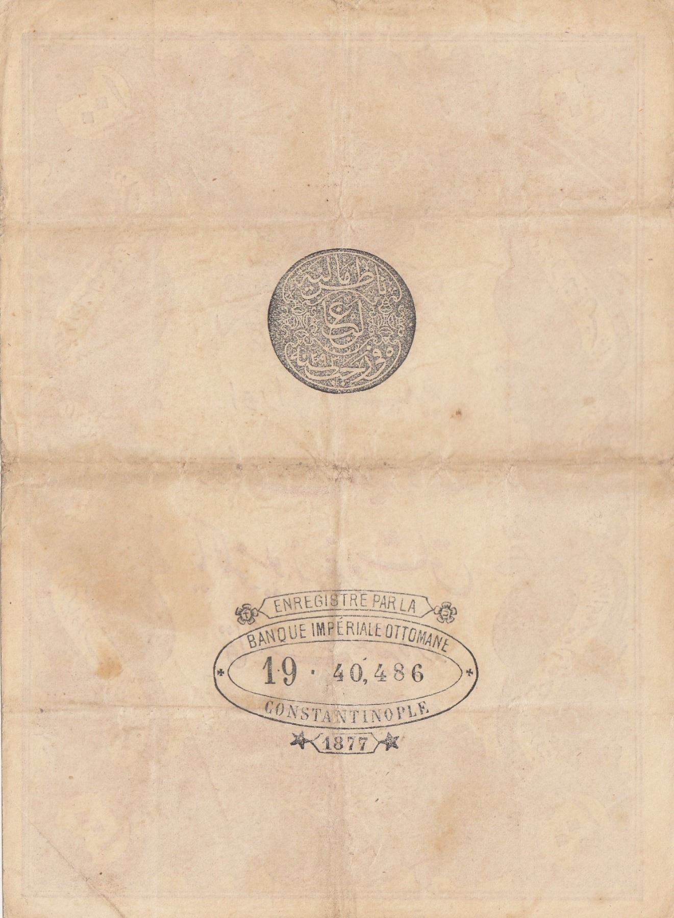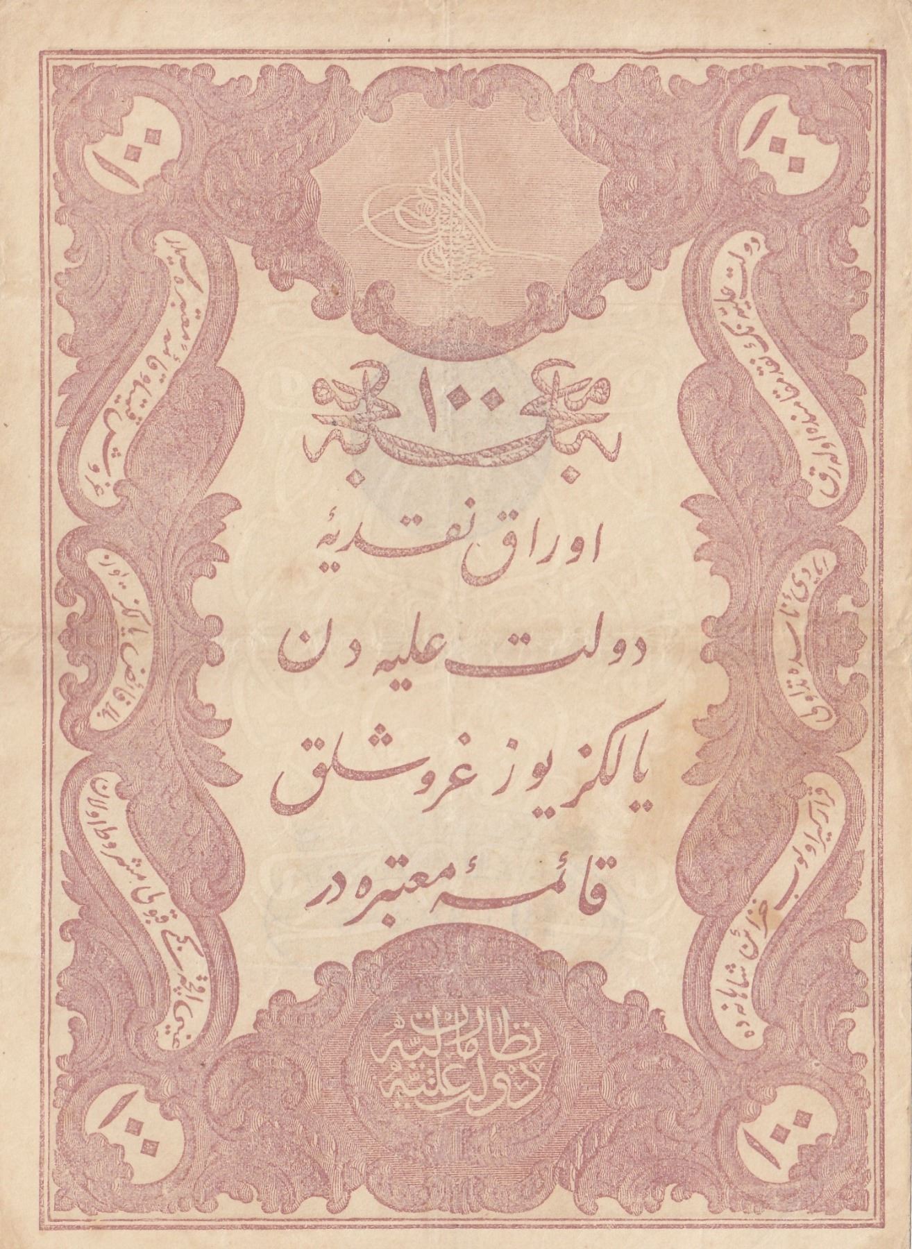Turkey, Ottoman Empire, 100 Kurush, 1877, UNC, p51a, Galibbr/II. Abdülhamid period, seal: Galib, AH:1293, serial number: 19-40486