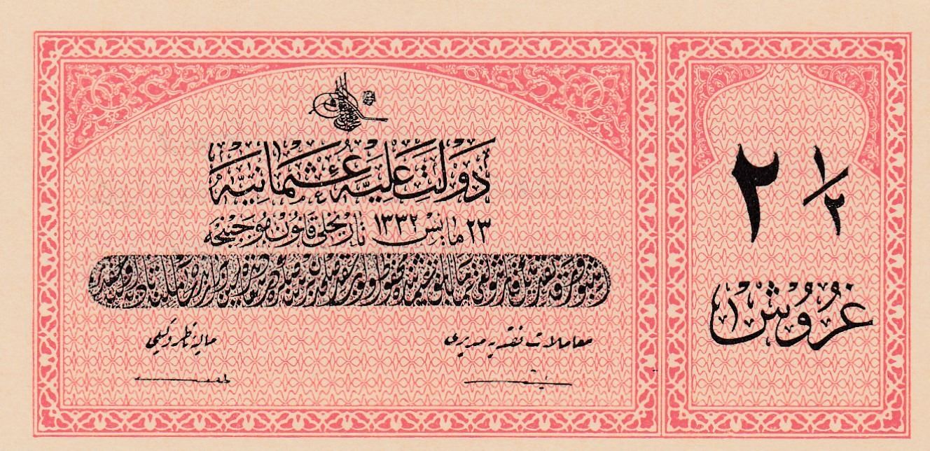 Turkey, Ottoman Empire, 2 1/2 Kurush, 1916, UNC, p86b, Talat / Rasidbr/V. Mehmed Resad period, sign: