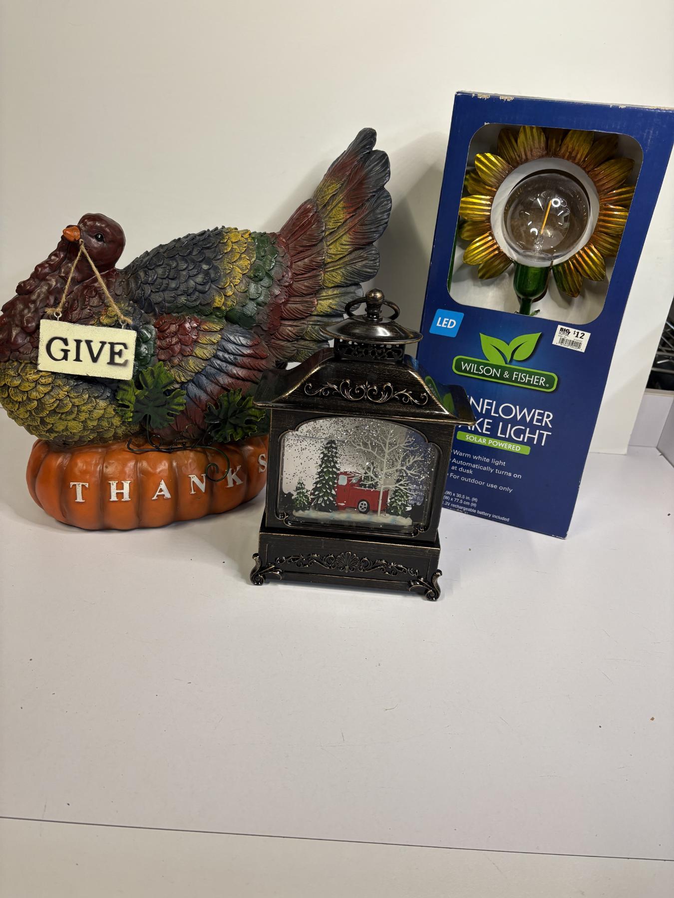 Turkey Thanksgiving Decor - Christmas Decor & Sunflower Stake Light Solar Powered