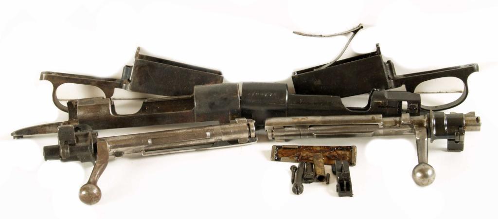 Turkish Mdl 1938 Mauser Actions & Parts SN:199774, 82968, Lot mfg'd 1944 includes 2 actions with bolts, magazine parts, and additional parts.SN:199774, 82968, Lot mfg'd 1944 includes 2 actions with bolts, magazine parts, and additional parts.