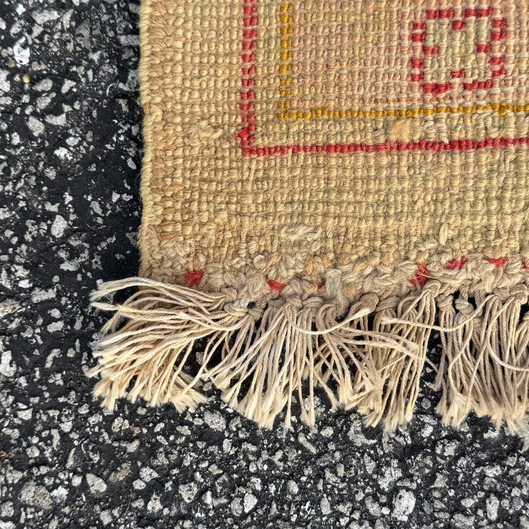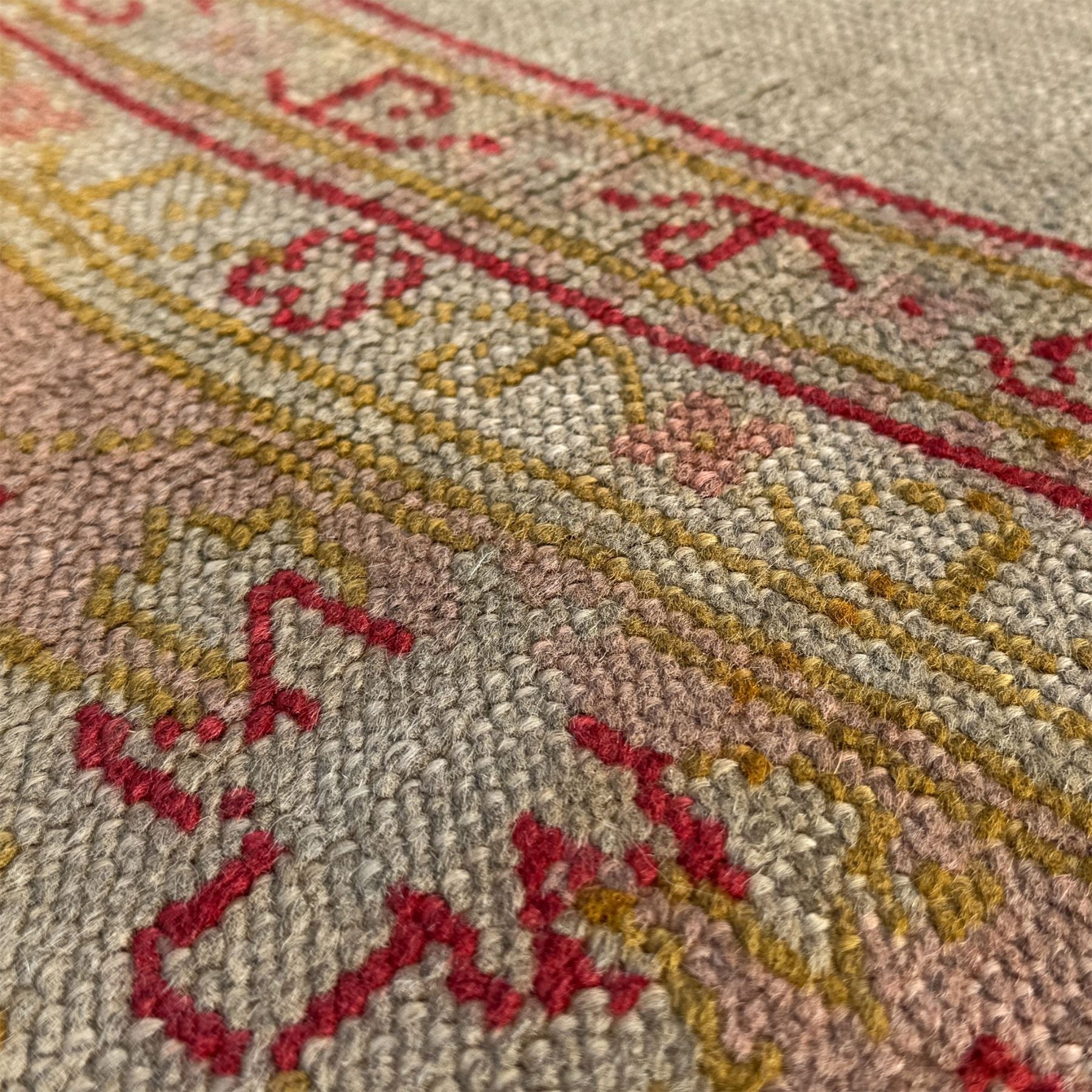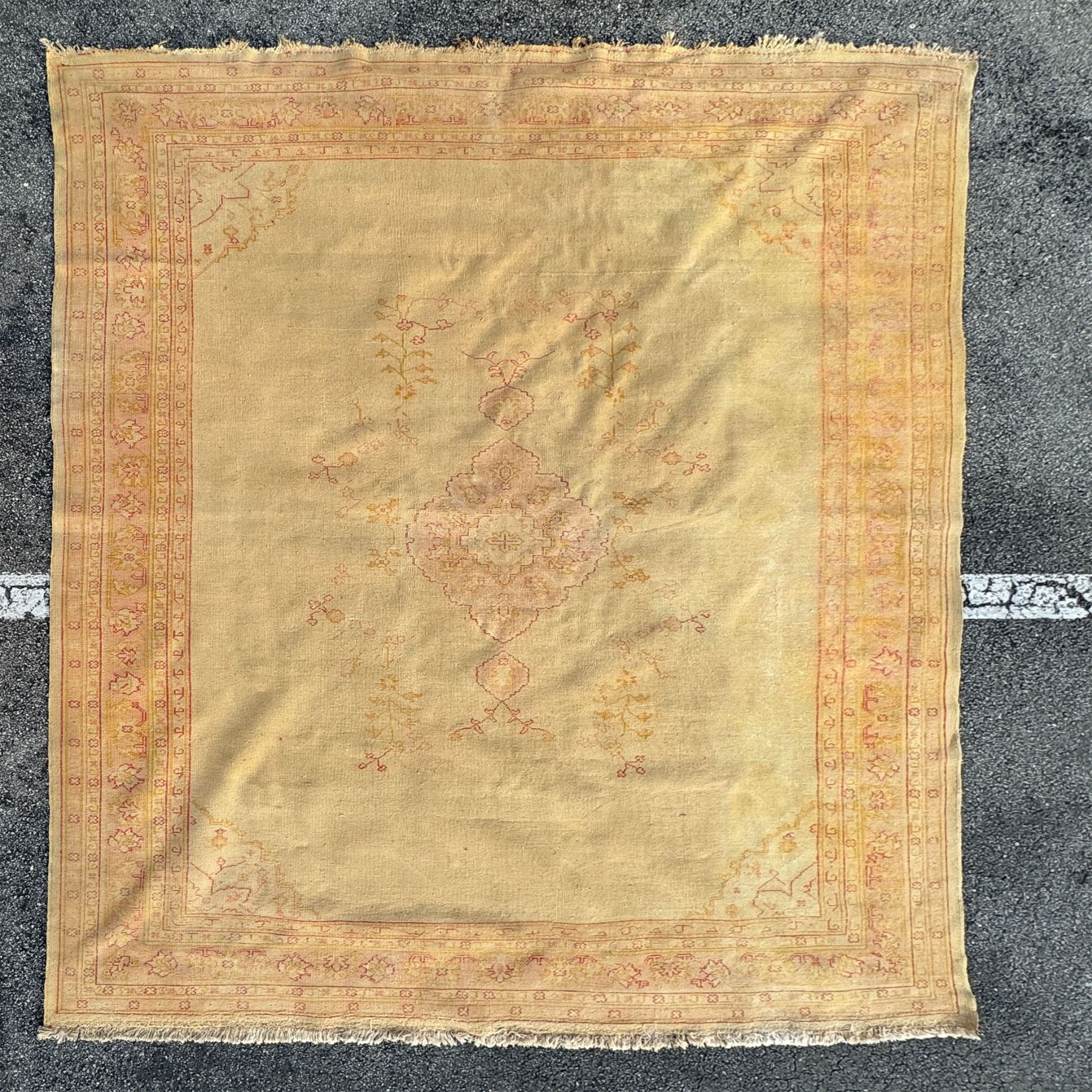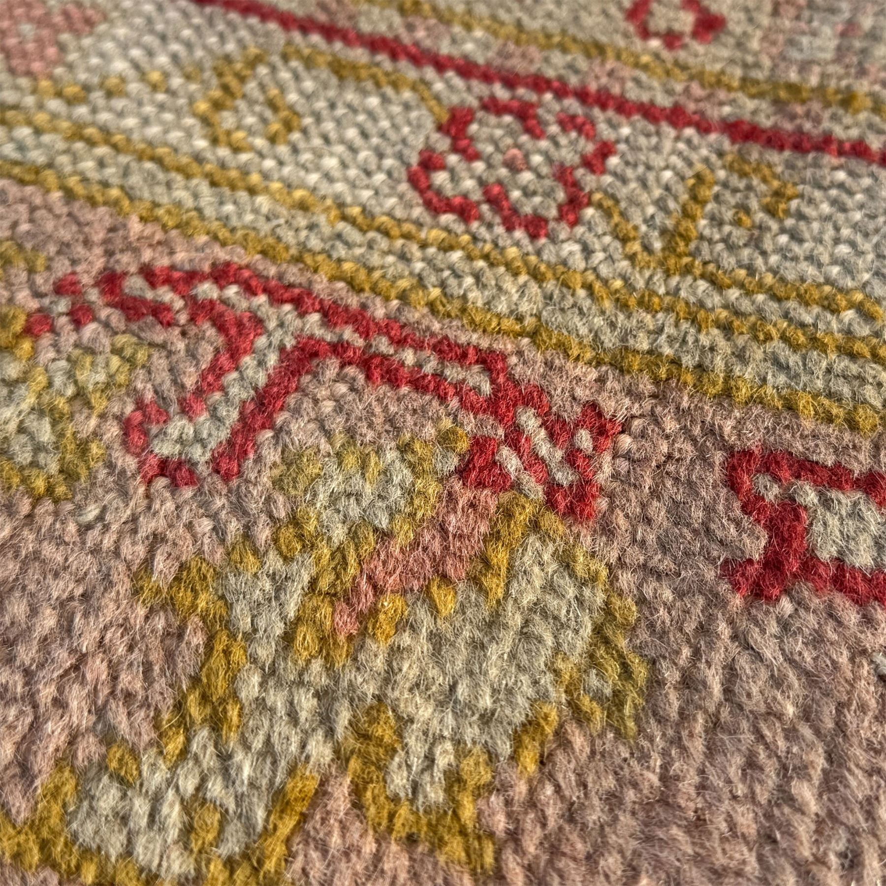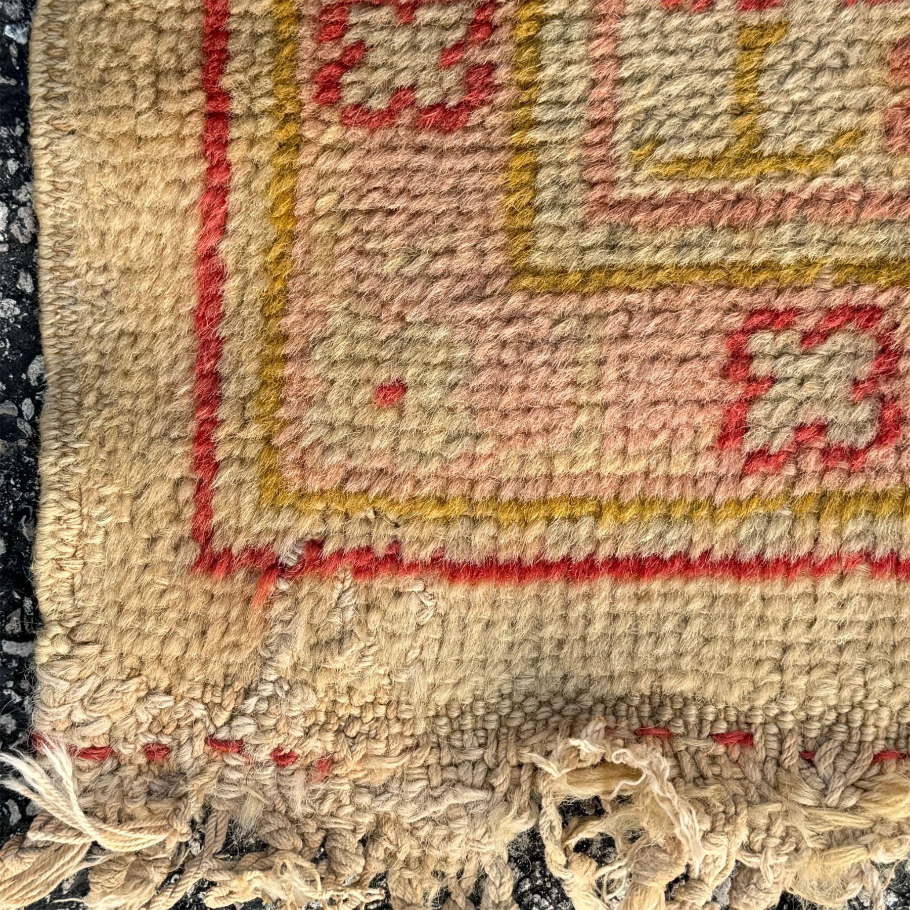 A large white rug featuring pink and yellow accented floral artwork, with delicate linework that comes together to create a beautiful, vibrant flower imagery.