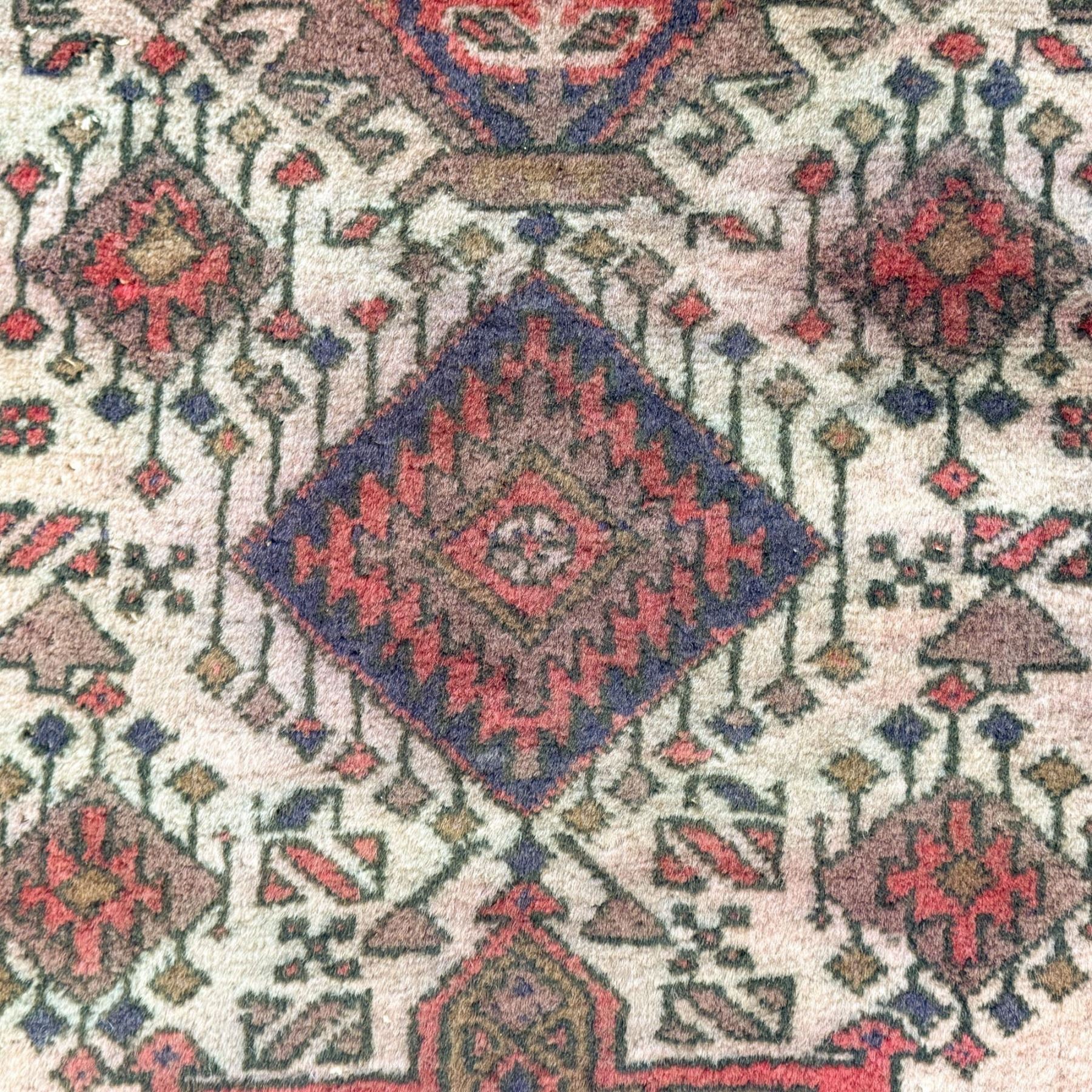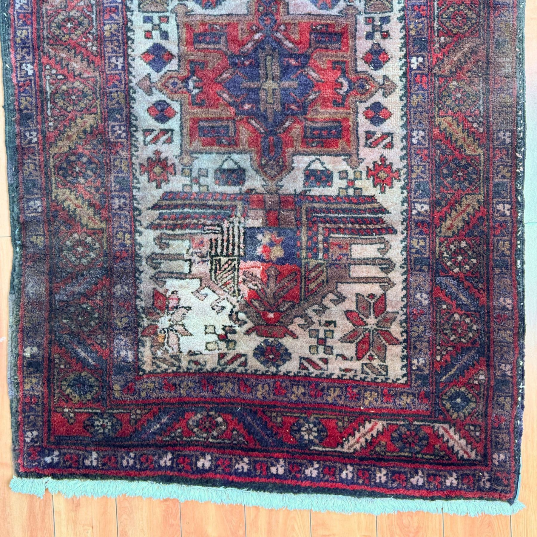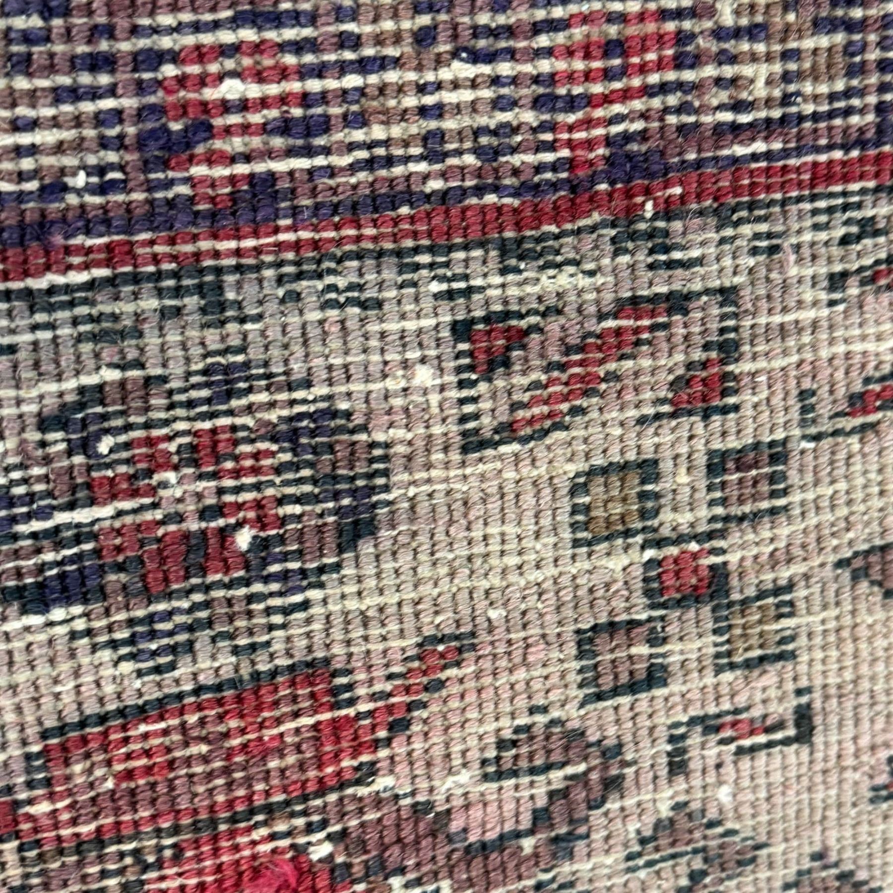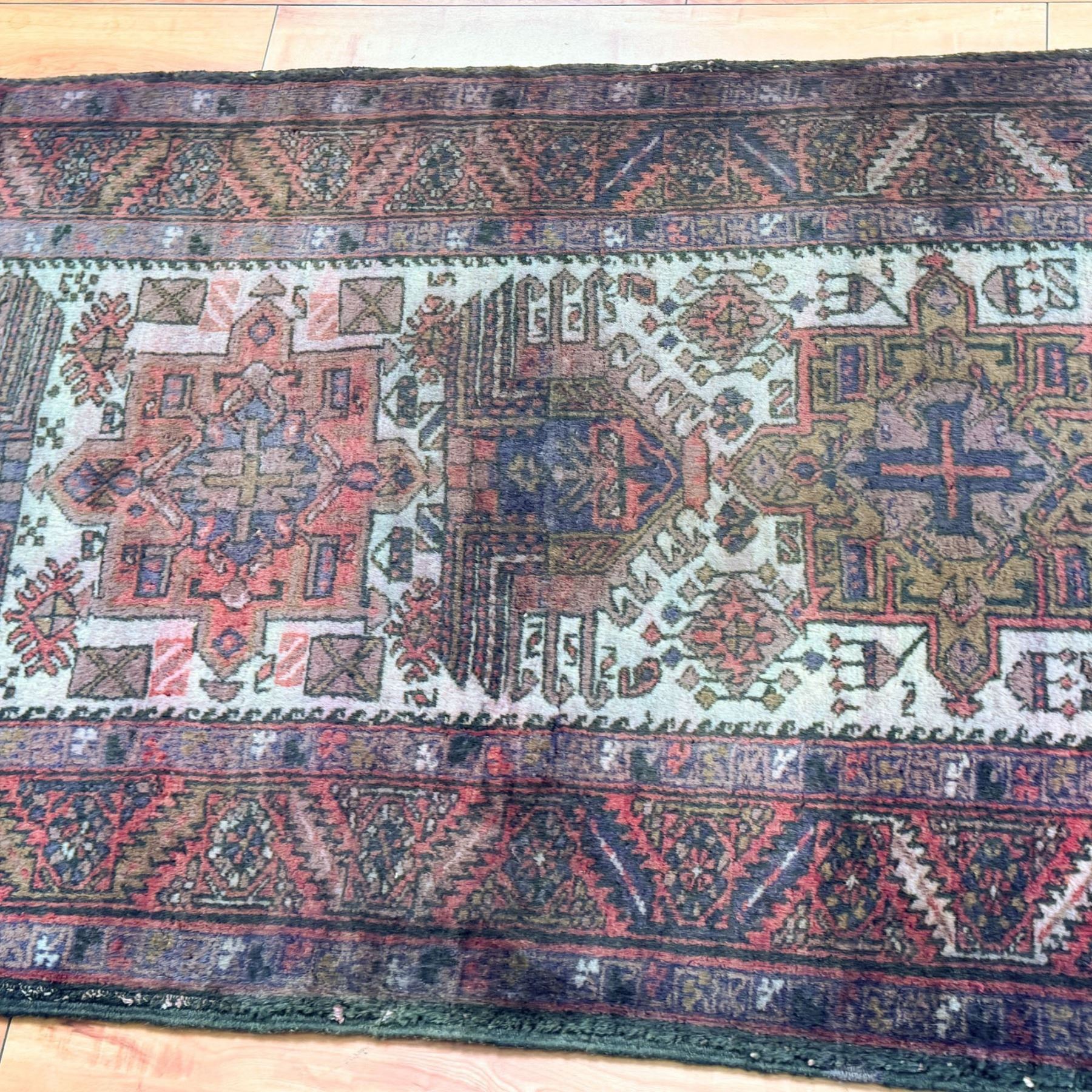 A long red, black, and brown rug featuring a captivating array of shapes, including snowflakes, squares, staircases, and more, woven together to create a mesmerizing tapestry of design.