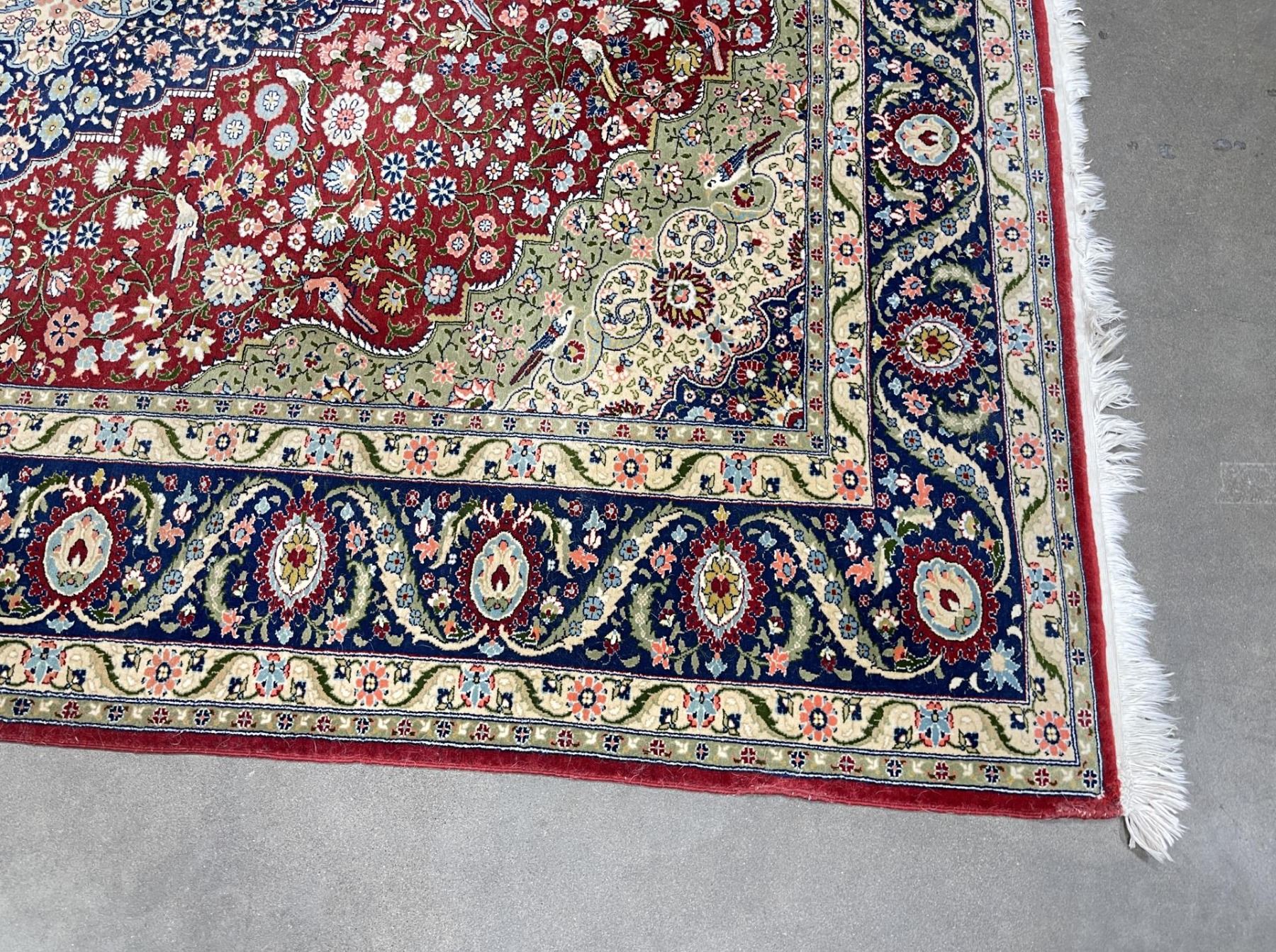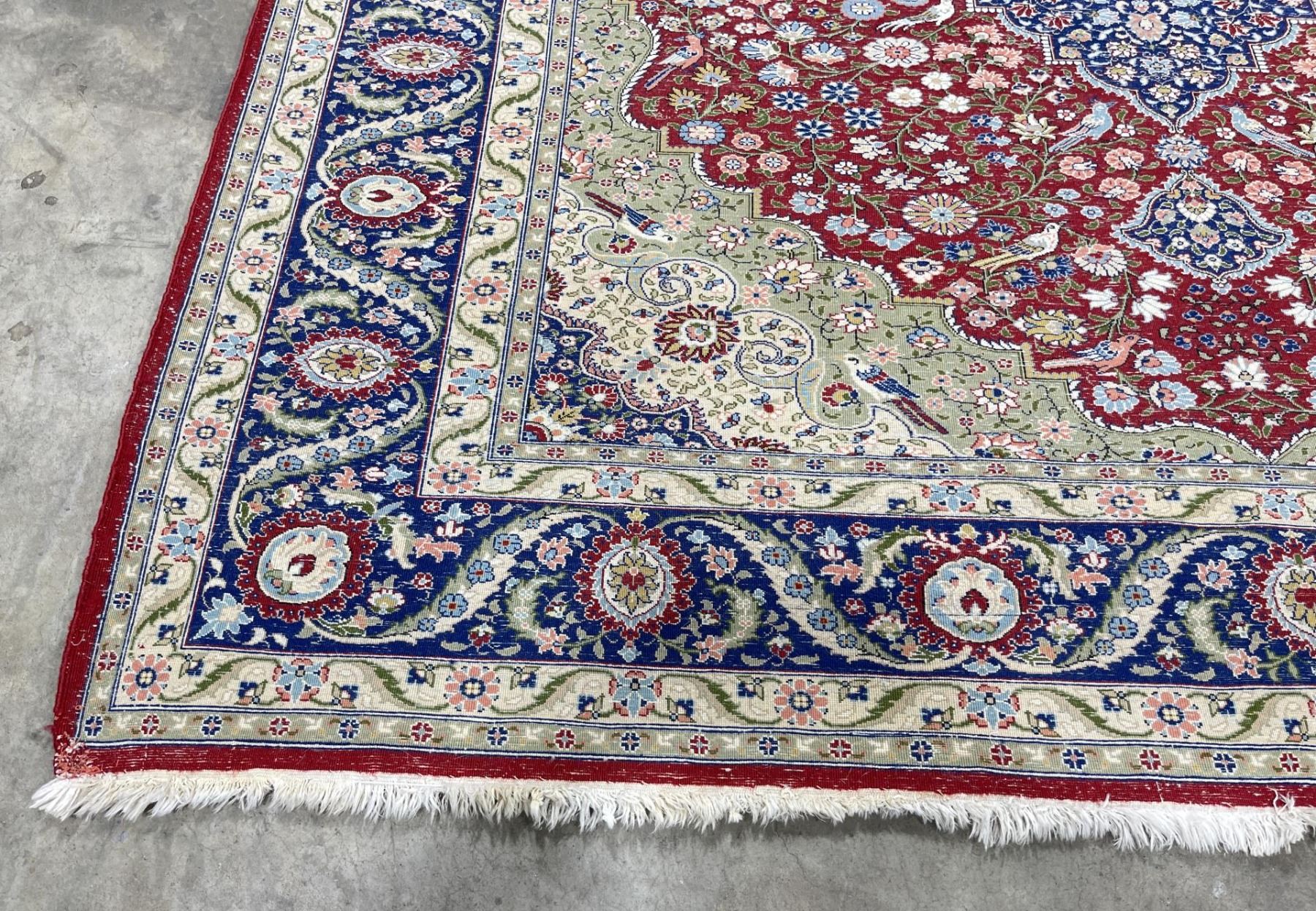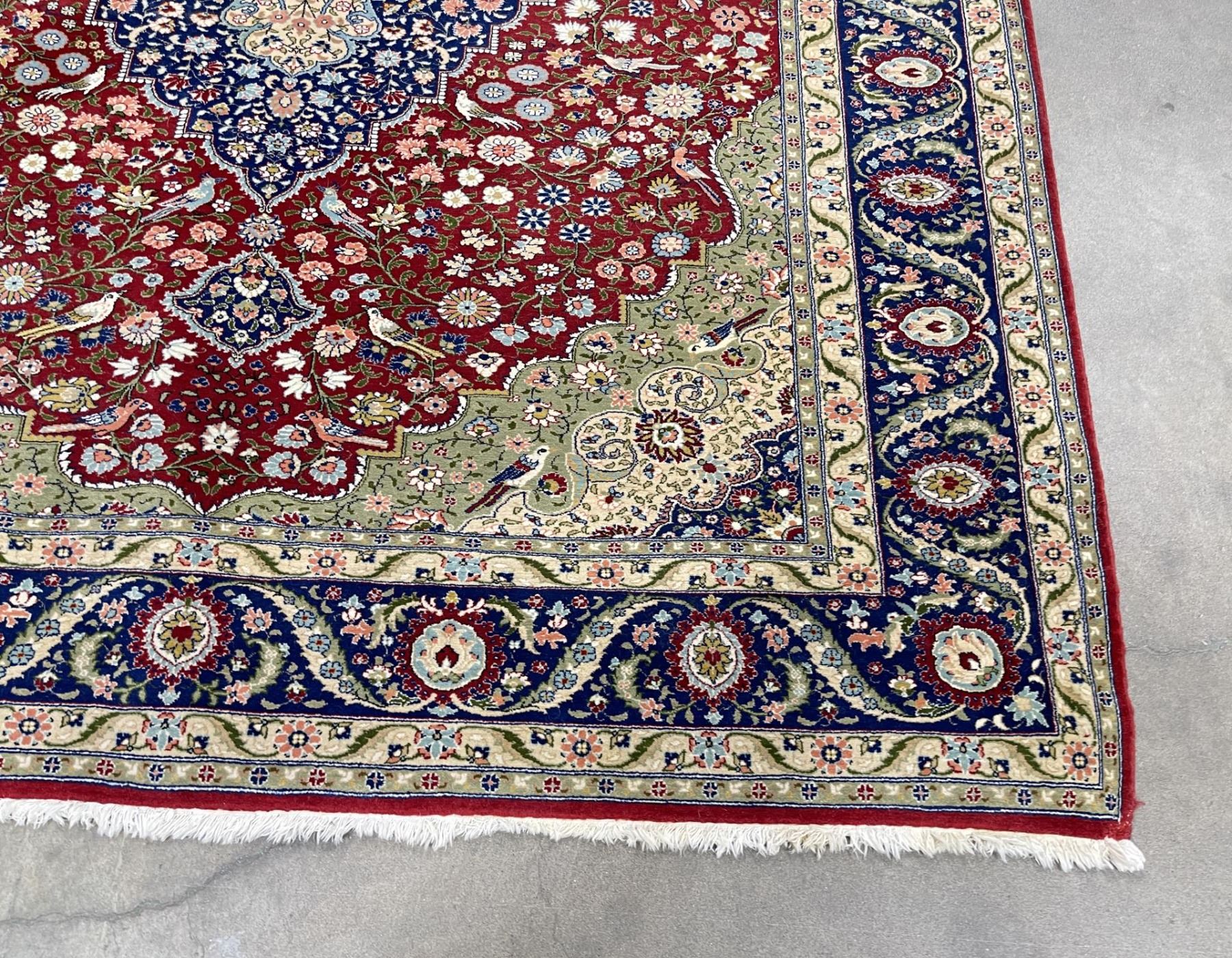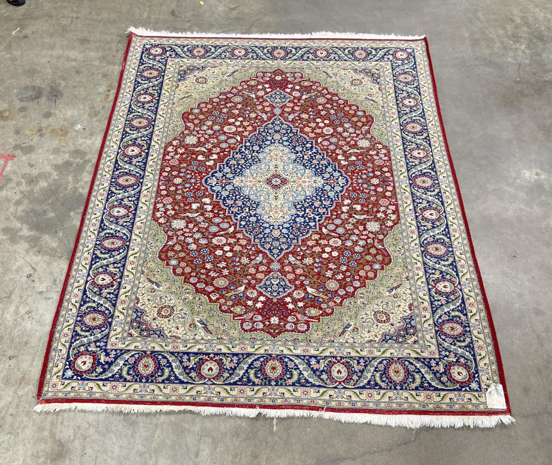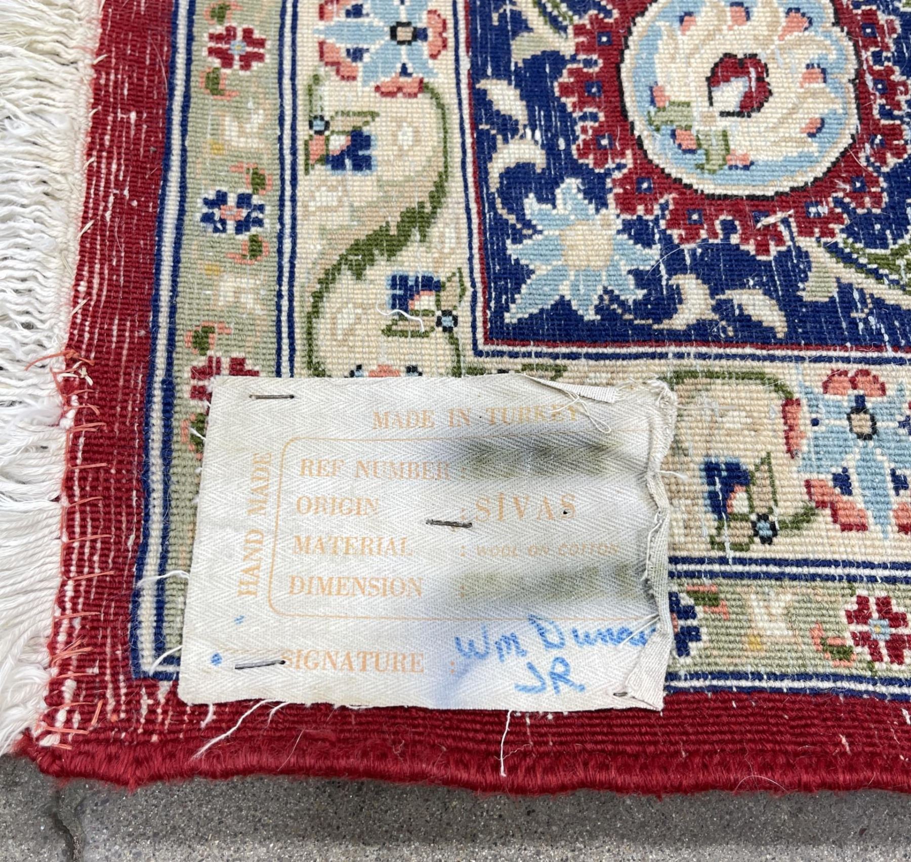 83.75" by 105". Made in Turkey. Wool on Cotton. Tag states Sivas as origin.