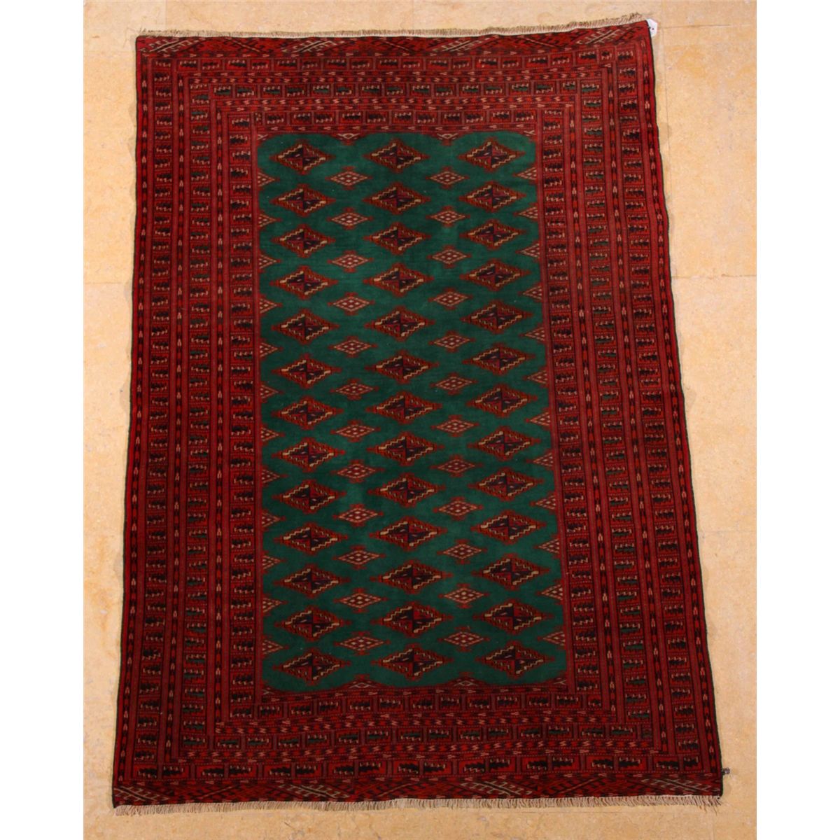 Turkman Bokhara on Silk Foundation with Wool Pile, 100% handspun wool, vegetable dye, color fast [ Width (ft/in)=4' , Height/Length (ft/in)=6' , Depth (in)= 0, Weight (lbs)=9 ]