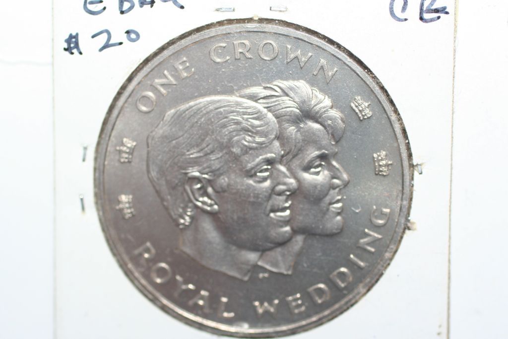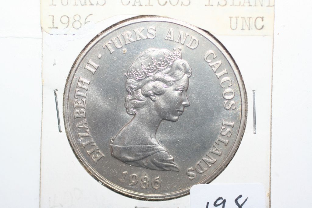 This lot is a 1986 turks & caicos island 1 crown coin; prince andrew royal wedding