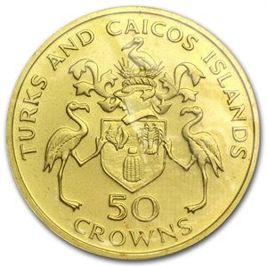 Turks & Caicos 1974 50 Crowns Gold Matte **|**|** Year: 1974 ; Mint Mark: Matte ; Grade: N/A ; Denomination: 50 Crowns ; MSRP: $400