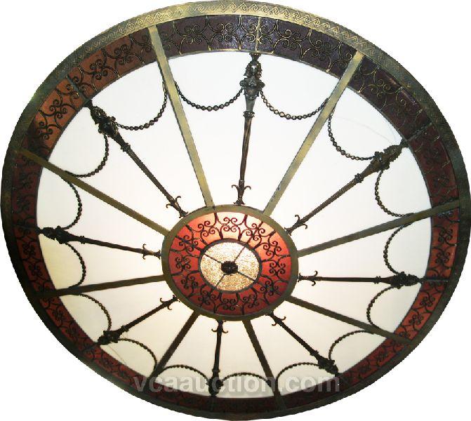Turn Of The Century Art Glass Ceiling Dome. Original lead came w/ roman goddess - 68" diam From a theater in Chicago