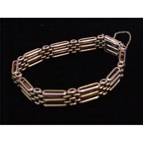 Absolutely stunning circa 1900 14kt yellow gold flexible gate bracelet in fabulous condition!! Wonderful clasp with yellow gold safety chain. Clasp has two side bars which clasp down on each side of clasp. Invisible box clasp. Wonderful piece. Great great condition. Very wearable, tailored look! A great find!!