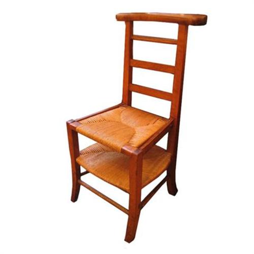 Turn of the century French pray chair in solid cherry wood with a ladder back, two rush surfaces, one for sitting, and one for kneeling. A beautiful and charming country piece from Provence, c. 1910.