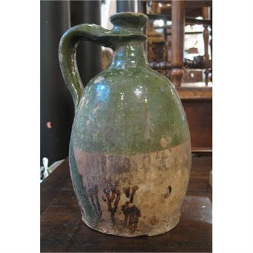 A water pitcher from Southwest France, half glazed in green, from the early 19th century.