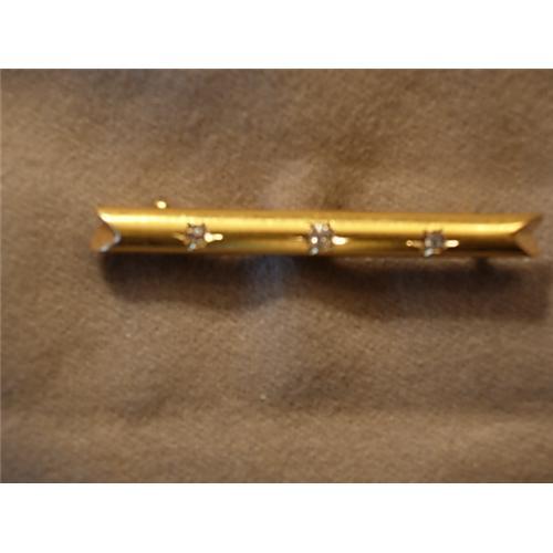 Attractive circa 1900 yellow gold and diamond bar pin brooch set with 3 small rose cut diamonds set into incised radiating star pattern - matte finish yellow gold mount - reverse: C-catch tube hinge pin stem - Great original condition - Fabulous tailored look!!