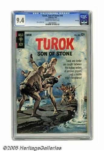 <B>Turok Son of Stone #40 File Copy (Gold Key, 1964) CGC NM 9.4 Cream to off-white pages.</B></I> Painted cover. Alberto Giolitti art. Overstreet 2005 NM- 9.2 value = $80. CGC census 7/05: 3 in 9.4, none higher. <I>From the Random House Archives.</B></I>