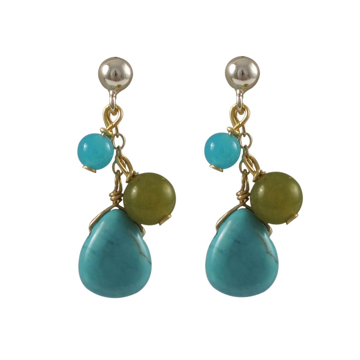 Turquise Semi Precious Stones On Gold Plated Sterling Silver Post Earrings, 1.22"