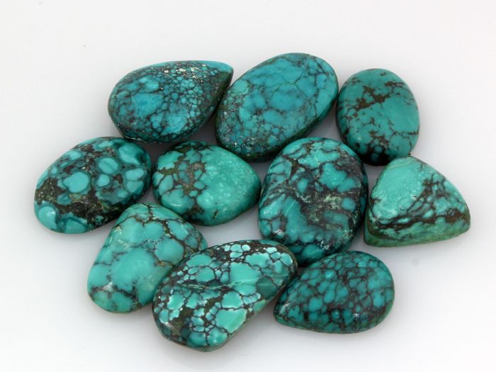 Turquoise 100.50ctw MixShape&Sizes LooseGemstone **|**|** 10 pcs Charming Genuine Cute Turquoise Cabochons Loose Gemstone in Various Sizes and Shape ; MSRP: $300