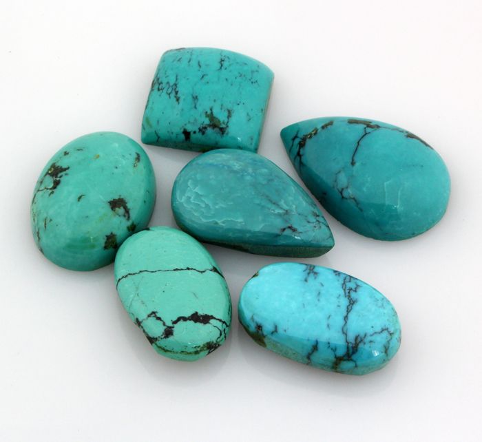 Turquoise 109.00ctw MixShape&Sizes LooseGemstone **|**|** 6 pcs Charming Genuine Turquoise Cabochons Loose Gemstone in Various Sizes and Shape ; MSRP: $400
