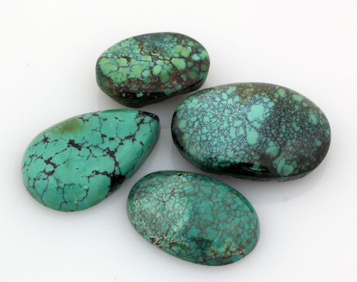 Turquoise 112.00ctw MixShape&Sizes LooseGemstone **|**|** 4 pcs Charming Genuine Turquoise Cabochons Loose Gemstone in Various Sizes and Shape ; MSRP: $400