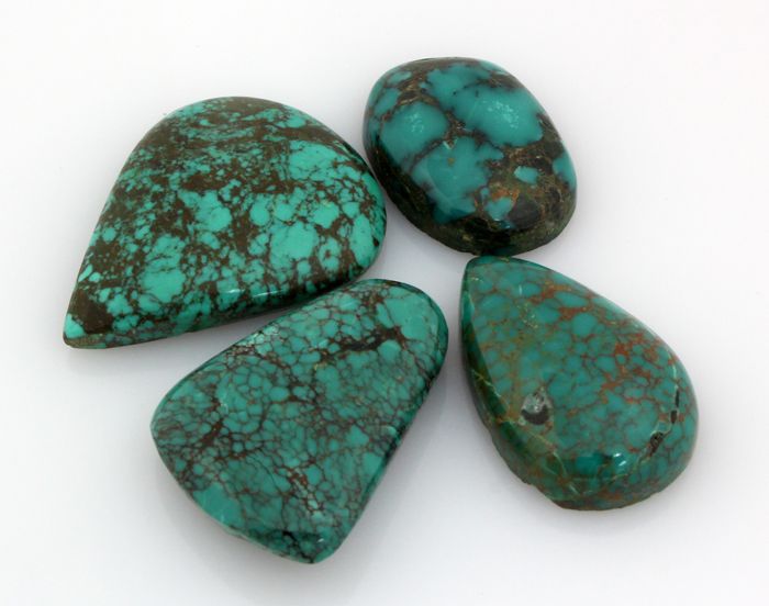 Turquoise 119.50ctw MixShape&Sizes LooseGemstone **|**|** 4 pcs Charming Genuine Turquoise Cabochons Loose Gemstone in Various Sizes and Shape ; MSRP: $400