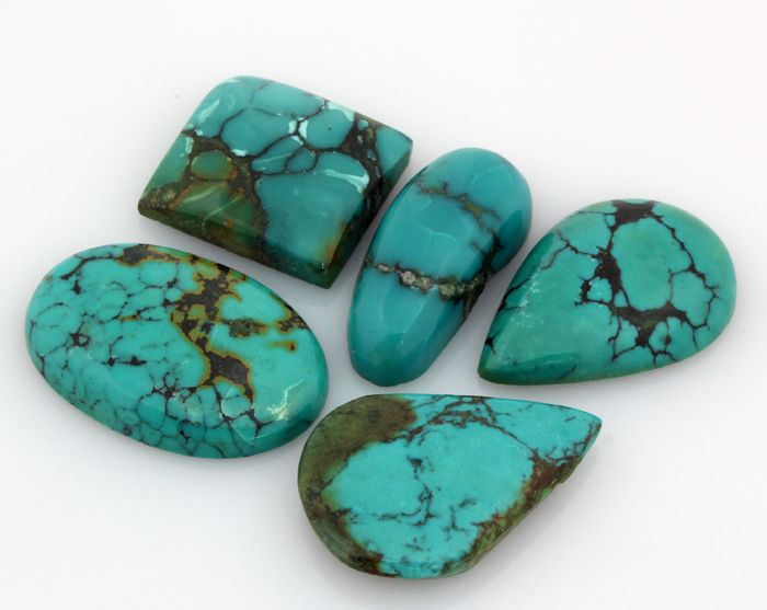 Turquoise 121.50ctw MixShape&Sizes LooseGemstone **|**|** 5 pcs Charming Genuine Turquoise Cabochons Loose Gemstone in Various Sizes and Shape ; MSRP: $400