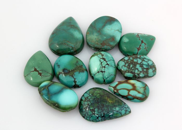 Turquoise 124.00ctw MixShape&Sizes LooseGemstone **|**|** 10 pcs Charming Genuine Cute Turquoise Cabochons Loose Gemstone in Various Sizes and Shape ; MSRP: $400