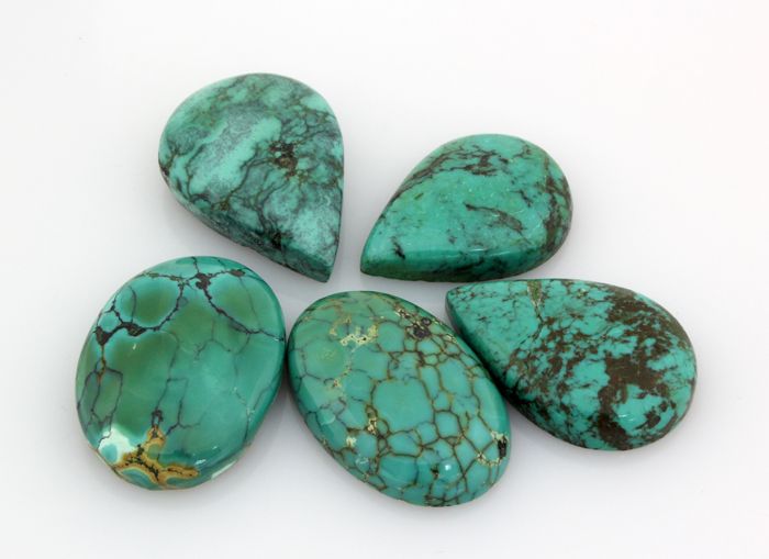 Turquoise 125.50ctw MixShape&Sizes LooseGemstone **|**|** 5 pcs Charming Genuine Turquoise Cabochons Loose Gemstone in Various Sizes and Shape ; MSRP: $400