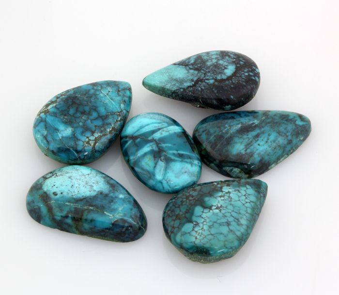 Turquoise 125.50ctw MixShape&Sizes LooseGemstone **|**|** 6 pcs Charming Genuine Turquoise Cabochons Loose Gemstone in Various Sizes and Shape ; MSRP: $400